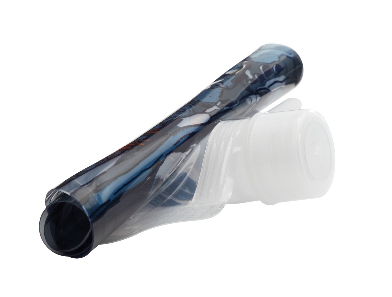 Uniwersalna, lekka i funkcjonalna butelka z bezpiecznego dla zdrowia polietylenu. Rolowana, mieści się wszędzie – w kieszeni, w plecaku czy torebce. Idealna podczas treningu, biegania lub szybkiego pokonywania górskich szlaków. Dwie wersje zamknięcia: zakrętka lub zawór otwórz-zamknij. Pojemność: 1 l