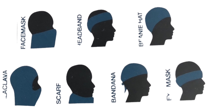 Chustka na szyję lub głowę, bezszwowa. Popularny "buff". Można jej używać jako szalika, czapeczki, opaski, maseczki, kominiarki, przepaski na włosy, zasłony na oczy, opaski na rękę lub ewentualnie opaski przytrzymującej na opatrunek.