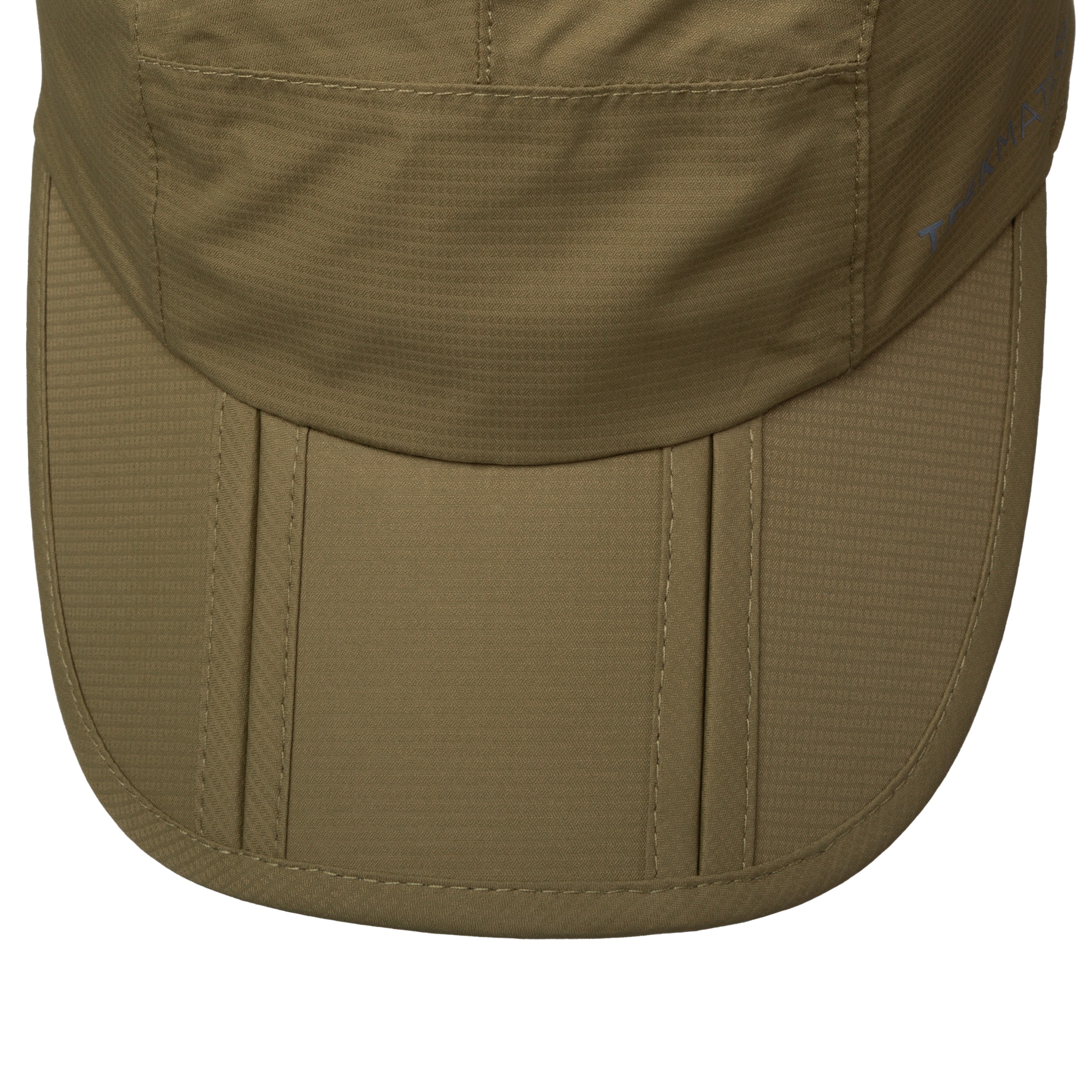 Wodoodporna czapka z siedmiocentymetrowym, składanym daszkiem, z tkaniny syntetycznej. Wyposażona w wodoodporną i oddychającą membranę DRY. Elastyczny panel z tyłu dopasowuje czapkę do głowy.