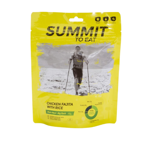 Fajita z kurczaka z ryżem (ponad 1000 kcal) Summit to Eat to pełnowartościowy obiad, który zaspokoi głód w każdej podróży. Liofilizowana żywność stanowi doskonałe rozwiązanie podczas wypraw z dala od schronisk i ludzkich siedzib, zwłaszcza w trakcie wypraw w ekstremalnych warunkach. Tego typu żywność jest niezastąpiona na szlaku: dodaje sił, zaspokaja głód, a przy tym waży niewiele i nie zajmuje w plecaku dużo miejsca. Liofilizowane dania – sprawdzone w ekstremalnych warunkach – przydadzą się też na tradycyjnych wakacjach w razie kłopotów z prowiantem.