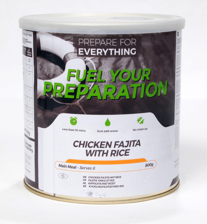 Fajita z kurczaka z ryżem Fuel Your Preparation to pełnowartościowy obiad, który zaspokoi głód w sytuacji awaryjnej.