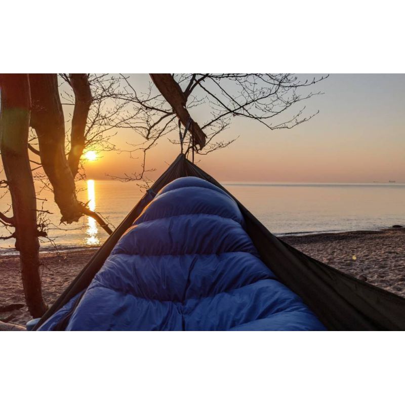 Cenimy sobie proste i sprawdzone rozwiązania, dlatego staraliśmy się zminimalizować najczęściej spotykane problemy hamaków, jak śliski materiał czy niskie ścianki boczne, zachowując jednocześnie niską wagę. Owocem rozważań nad funkcjonalnym hamakiem jest właśnie Svinge. Odpowiednio dobrany materiał nylon RipStop jest zauważalnie mniej śliski, dzięki czemu ogranicza samoistne zjeżdżanie śpiwora w trakcie snu W połączeniu z wysokimi, dobrze okalającymi ściankami bocznymi, bardzo dobrze zatrzymuje w miejscu i zapobiega przemieszczaniu się materaców pod plecami podczas wylegiwania się w hamaku.