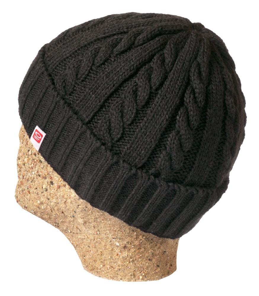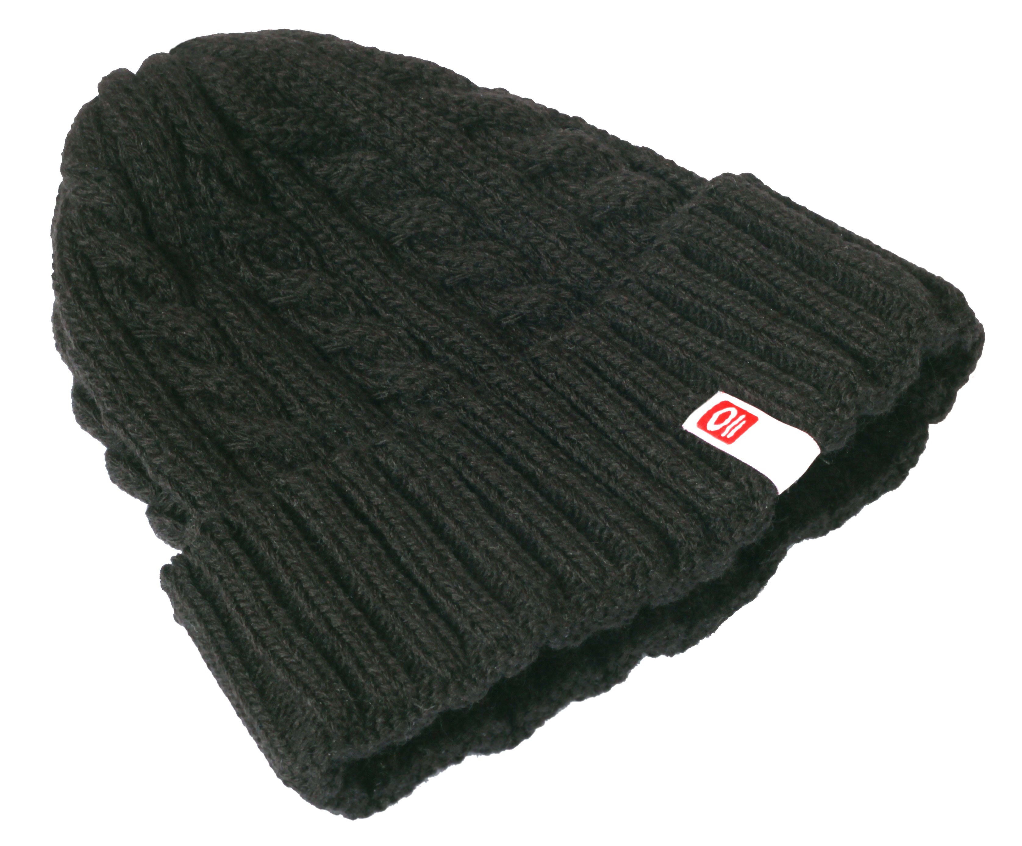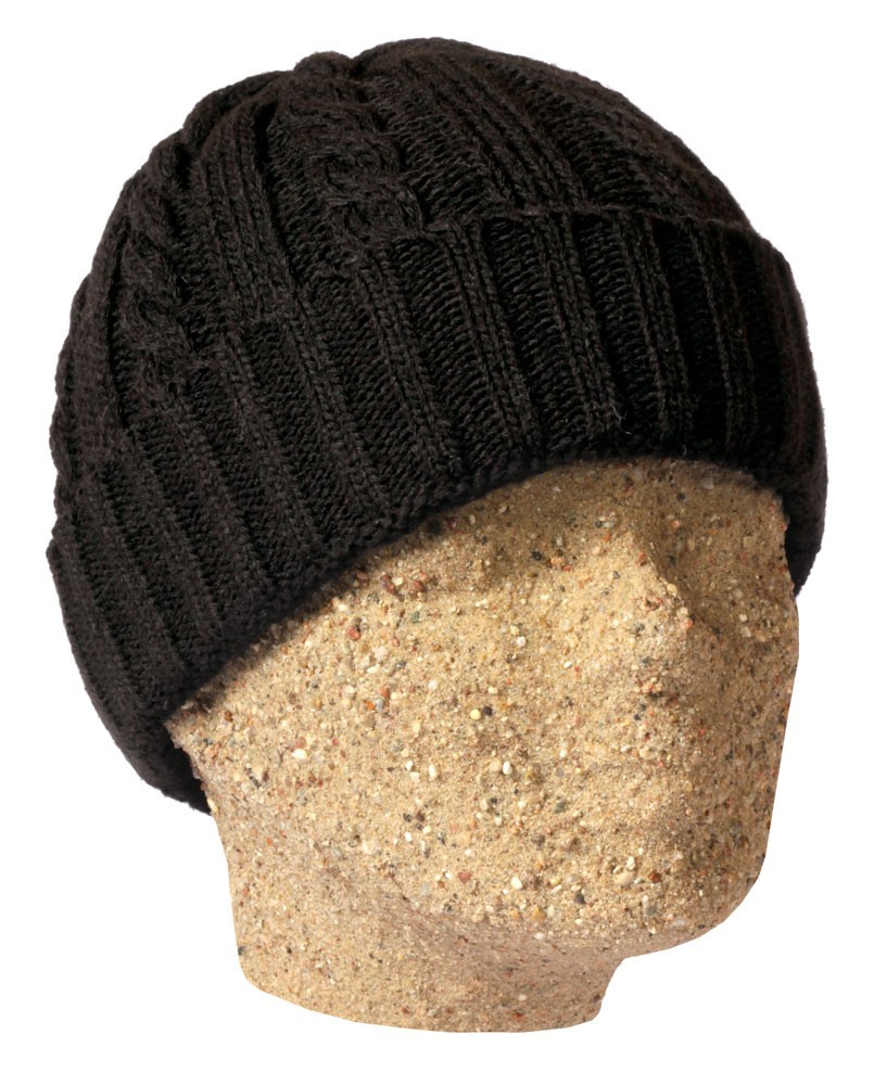 Ciepła, gruba, dziana czapka zimowa ze wzorem w warkocze. Skład: wełna 30%, akryl 70%.
