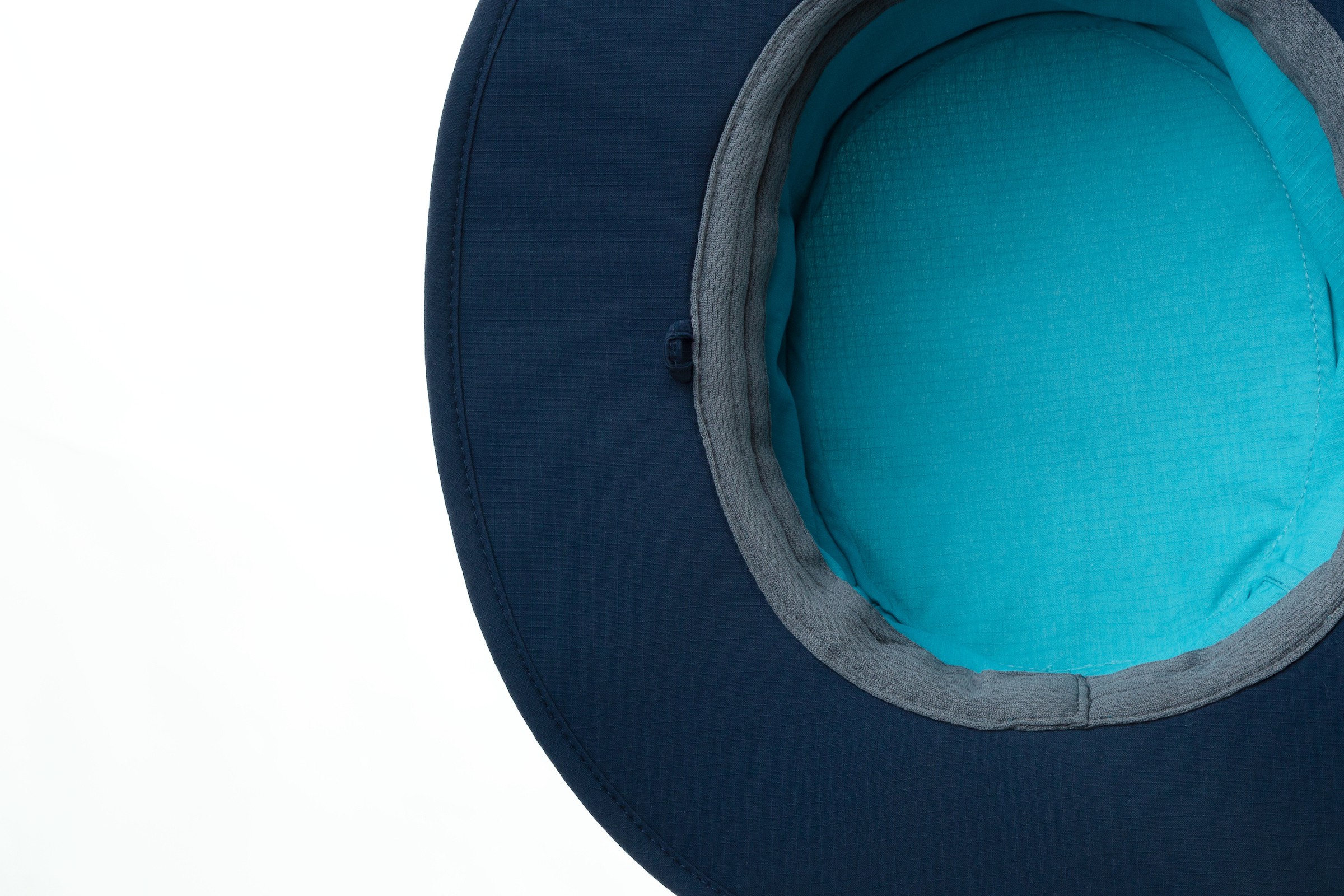 W słoneczne dni kapelusz osłoni przed słońcem - jest wyposażony w filtr przeciwsłoneczny o wartości 50+ UPF. Szerokie na 7 cm rondo od spodu jest w ciemnym kolorze, co eliminuje słoneczne odblaski.