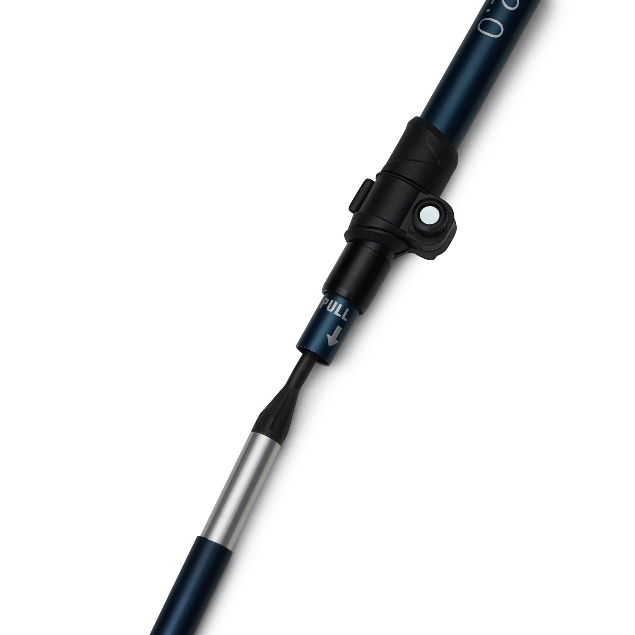 W nowej wersji naszych kijów skupiliśmy się na poprawie komfortu użytkowania oraz zwiększeniu ich wytrzymałości. Zmiana chwytu z piankowego na wzmocniony pianką z solidniejszą, zaokrągloną końcówką zapewnia lepsze wsparcie podczas opierania się na kiju od góry, co znacząco podnosi komfort użytkowania. Grot w nowym modelu jest łatwy do wymiany – wystarczy odkręcić metalową końcówkę. Letni talerzyk zmieniliśmy na elastyczny materiał, który lepiej trzyma się kija i jest bardziej odporny na uszkodzenia. Dodatkowo, ma nowy, ergonomiczny kształt. Zastąpiliśmy plastikowe osłony grotu gumowymi stopkami ARROWHEAD, które chronią grot w transporcie i przechowywaniu, a także zapewniają stabilność na twardych nawierzchniach, takich jak asfalt czy beton. Ulepszony Click System II z metalowym zamknięciem zamiast plastikowego oraz śrubą samokontrującą zapobiega odkręceniu się elementów. Nowa konstrukcja przycisku blokady zapobiega jego wpadaniu do środka, a linka zabezpieczona gumowym otokiem chroni mechanizm przed brudem. Wisienką na torcie jest regulowana pętla na nadgarstek, która od wewnętrznej strony ma przyjemny w dotyku polarowy materiał. Dzięki temu poprawia komfort użytkowania oraz zapobiega otarciom, zapewniając jeszcze większą wygodę podczas długich wędrówek.