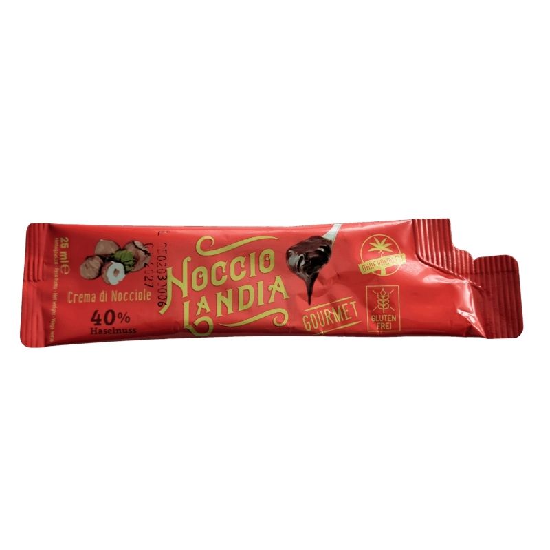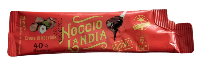 Orzechowo - kakaowy krem, w wygodnej saszetce o pojemności 25 ml, którą można mieć zawsze w kieszeni.