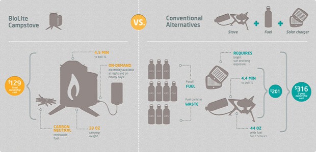 Kuchenka CampStove to sztandarowy produkt sprawdzonej i cenionej na rynku outdoorowym firmy BioLite, która specjalizuje się w rozwijaniu i produkowaniu zaawansowanych technologicznie produktów, dzięki czemu gotowanie jest łatwe i bezpieczne. Ta ekologiczna kuchenka polowa otrzymała w 2012 r. prestiżową nagrodę Innovation By Design Award w kategorii Consumer Goods.