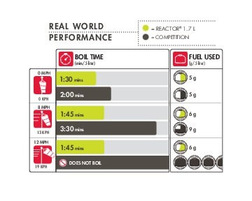 W gotowaniu to mistrz świata – błyskawicznie możemy się napić i zjeść coś ciepłego w niemal każdych okolicznościach. Mimo że mija kolejny rok jej obecności na rynku, można z całą pewnością stwierdzić, że kuchenka MSR Reactor cały czas pozostawia konkurencję w tyle (wg. badań oraz testów w terenie także inne, nowsze modele MSRa, Primusa czy Jetboila – przyp.red.). Szczególnie, jeśli chodzi o szybkość gotowania, również na wietrze.