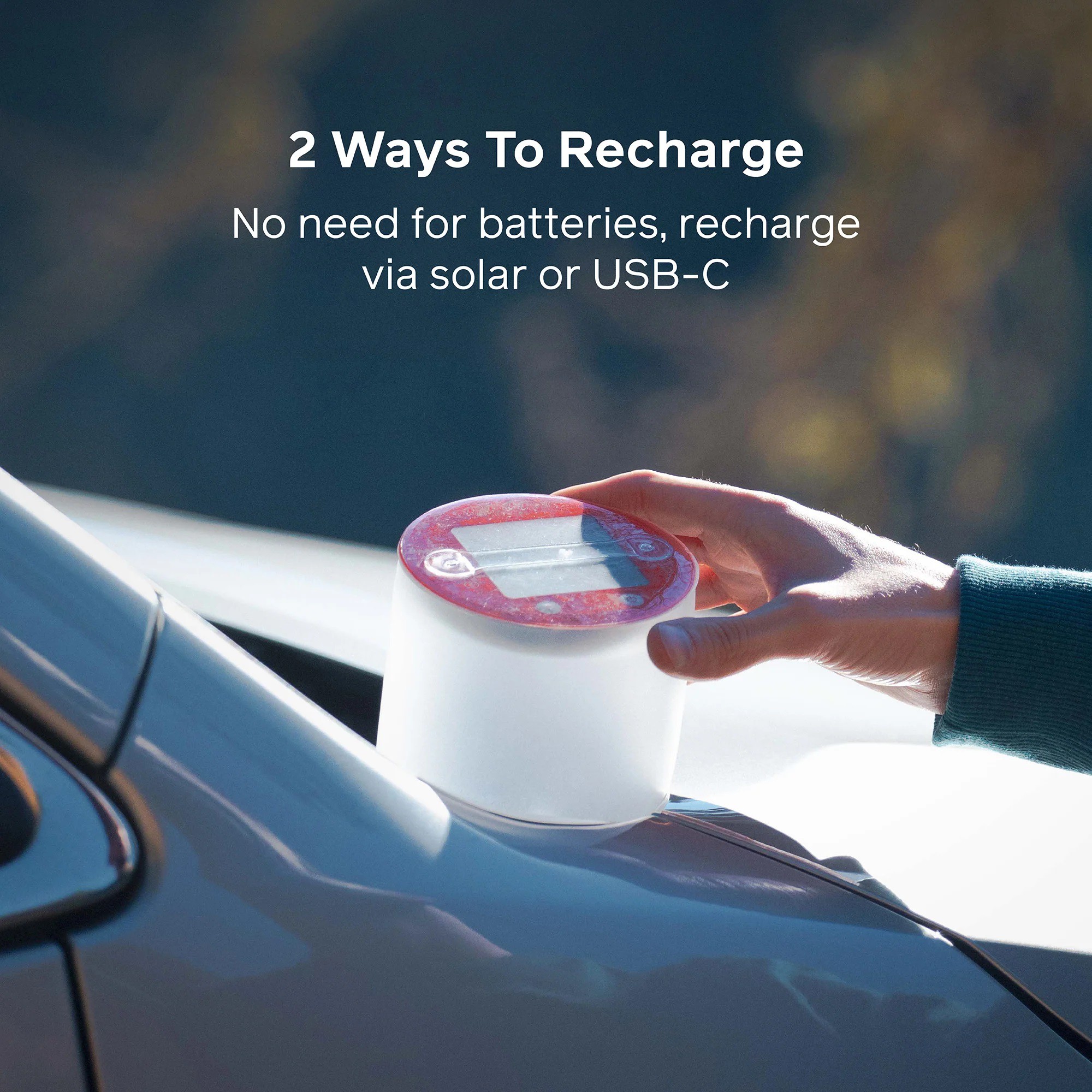 Ta pakowna i nieduża lampka solarna o nadmuchiwanej obudowie to propozycja dla turystów dbających o bezpieczeństwo. Ładowana światłem słonecznym oraz przez kabel USB-C, może służyć poza domem. W awaryjnej chwili, kiedy następuje konieczność wezwania pomocy, lampka emituje sygnał S.O.S. Dzięki mlecznemu odcieniowi obudowy świeci ciepłym, przymglonym blaskiem. Dzięki swojej niskiej wadze, mniejszej niż tabliczka czekolady, może być używana wieczorami przez każdego turystę, wodniaka czy wspinacza.