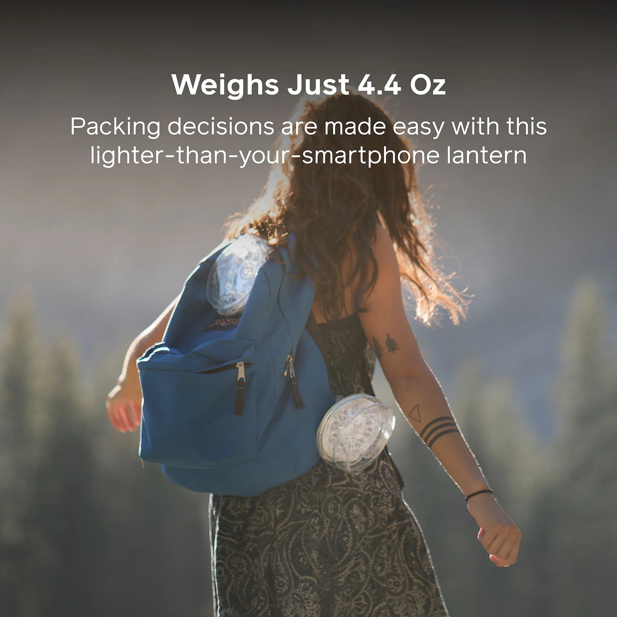 Nadmuchiwany korpus rozprasza zimne światło płynące z dziesięciu diod LED, osiągając maksymalnie natężenie światła 75 Lm (lumenów). Lampka posiada trzy poziomy natężenia światła i dodatkowo białe światło pulsujące. Wskaźnik naładowania baterii informuje, kiedy należy ją naładować. Przezroczysty korpus pozwala doskonale oświetlać teren „z góry”.