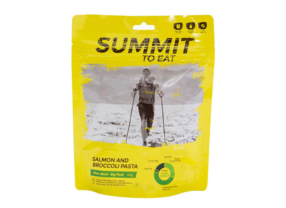 Łosoś z makaronem i brokułami (ponad 1000 kcal) Summit to Eat to pełnowartościowy obiad, który zaspokoi głód w każdej podróży. Liofilizowana żywność stanowi doskonałe rozwiązanie podczas wypraw z dala od schronisk i ludzkich siedzib, zwłaszcza w trakcie wypraw w ekstremalnych warunkach. Czas przygotowania posiłku to niecałe 10 minut.