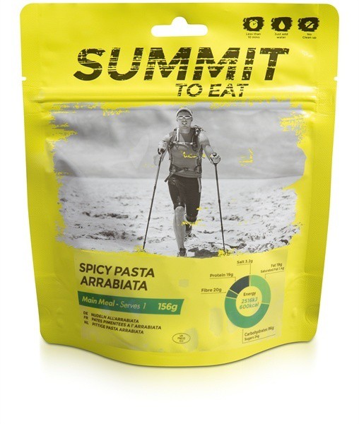 Makaron z pikantnym sosem pomidorowo-czosnkowym w stylu arabskim (aż 1000 kcal) Summit to Eat to pełnowartościowy obiad (nie tylko dla wegetarian i wegan), który zaspokoi głód w każdej podróży. Liofilizowana żywność stanowi doskonałe rozwiązanie podczas wypraw z dala od schronisk i ludzkich siedzib, zwłaszcza w trakcie wypraw w ekstremalnych warunkach. Czas przygotowania posiłku to zaledwie parę minut.