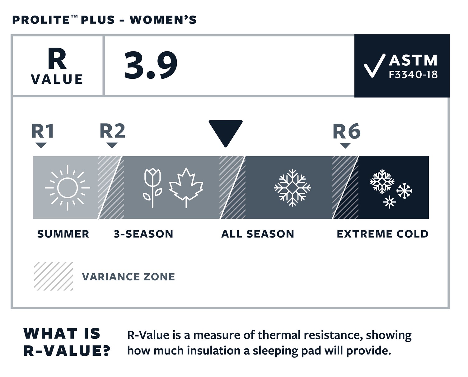Współczynnik izolacyjności R-value 3.9, wyższy niż wersja uniseks, ponieważ kobiety intensywniej odczuwają chłód i dlatego potrzebują materaca o wyższej izolacyjności.