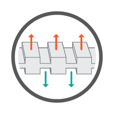 Unikalna konstrukcja StrataCore polega na usunięciu z materaca fragmentów pianki bez perforacji go na wylot. To znacząco zmniejsza wagę i podwyższa izolacyjność. Pianka jest sprężysta i lekka. Materac po napełnieniu ma powierzchnię w poprzeczne "żeberka", co zwiększa przyczepność śpiwora i eliminuje jego zsuwanie się.