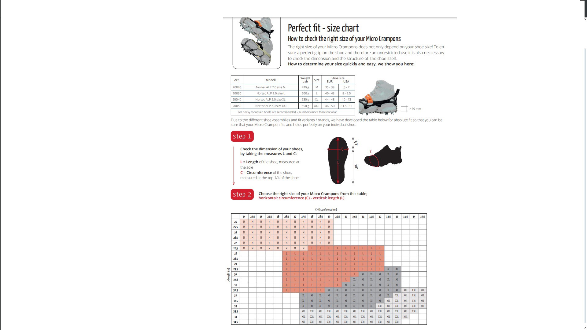 Przed 1-szym użyciem prosimy o przymierzenie raczków do obuwia, sprawdzenie poprawności dopasowania - pod kątem bezpieczeństwa stosowania oraz ochrony obuwia przed uszkodzeniem.