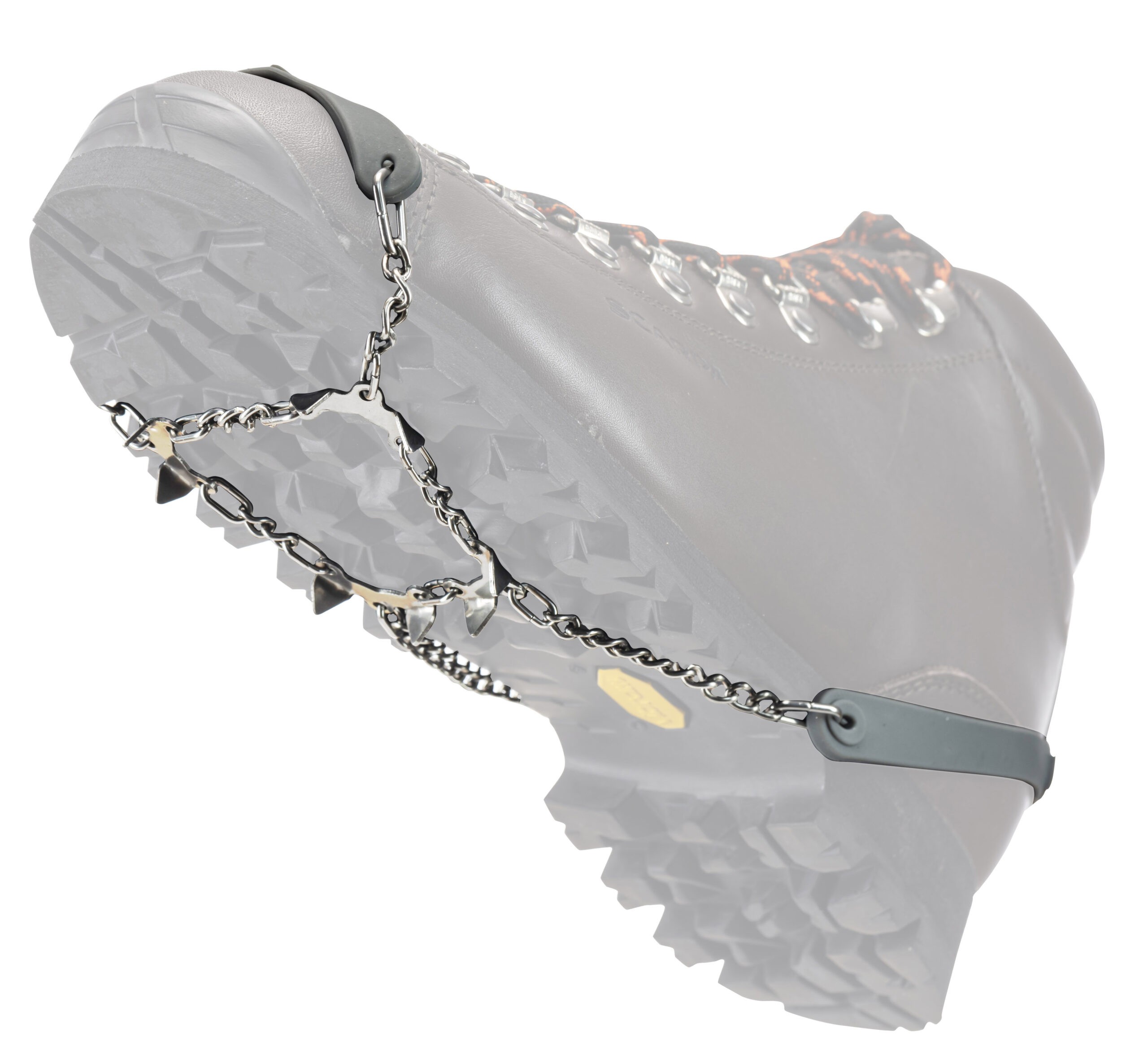 - łańcuszek z ząbkami i elastyczną obejmą na przód i piętę butów