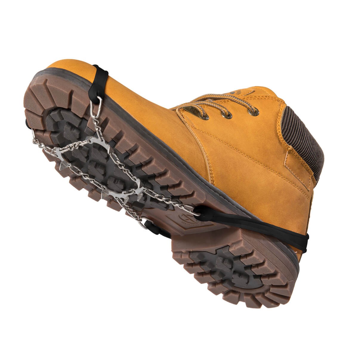 - znakomita przyczepność – łańcuszek i ostre kolce pod podeszwą dają pewność w poruszaniu się po oblodzonych powierzchniach i znacząco ułatwiają utrzymanie równowagi;