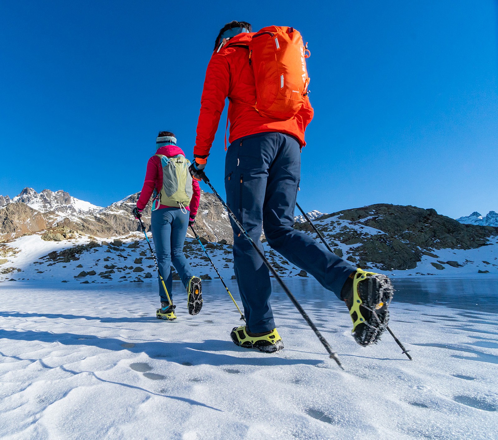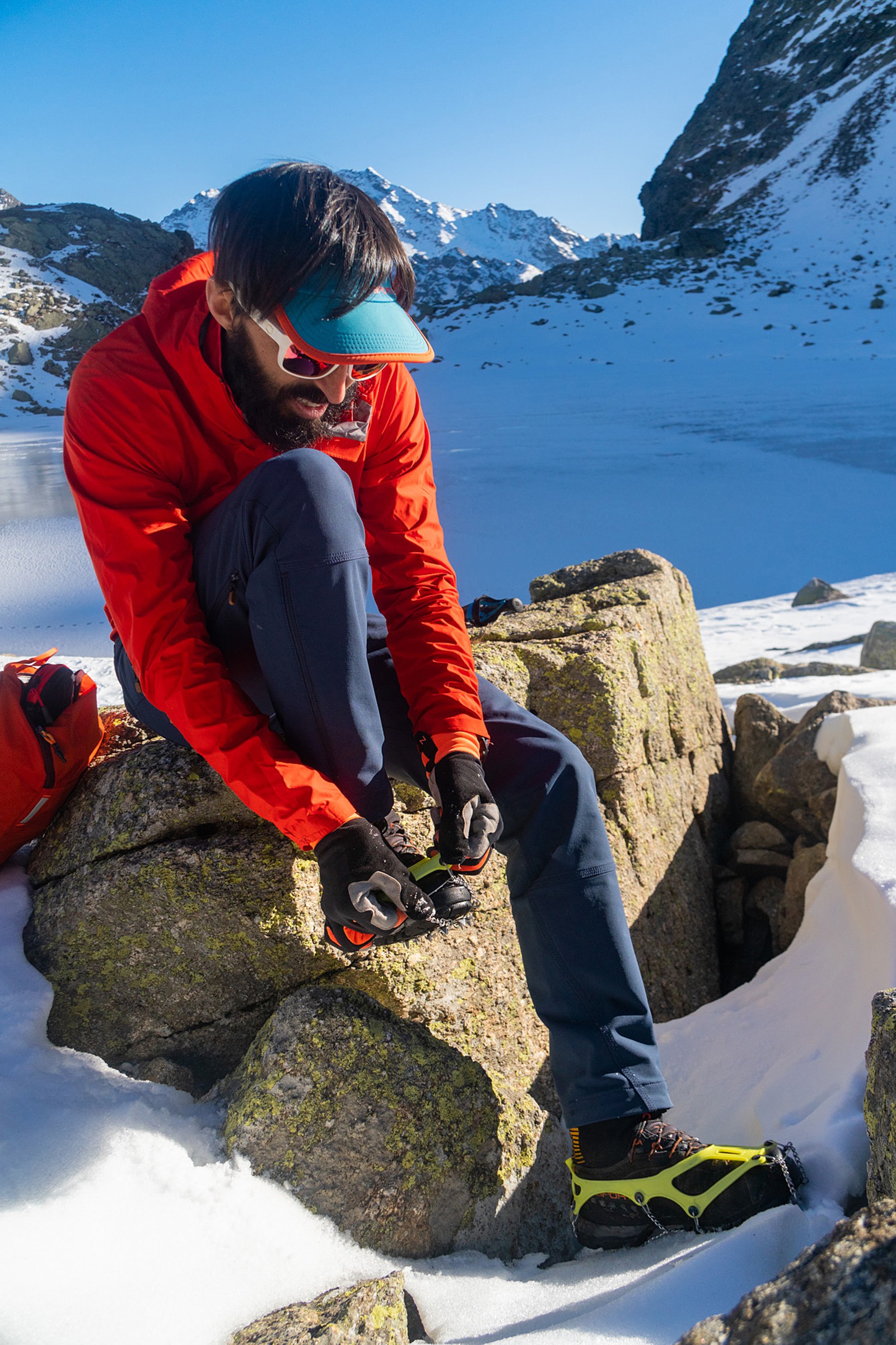 - znakomita przyczepność do lodu i śniegu – ostre kolce pod podeszwą znacząco ułatwiają utrzymanie równowagi na lodzie i twardym śniegu;