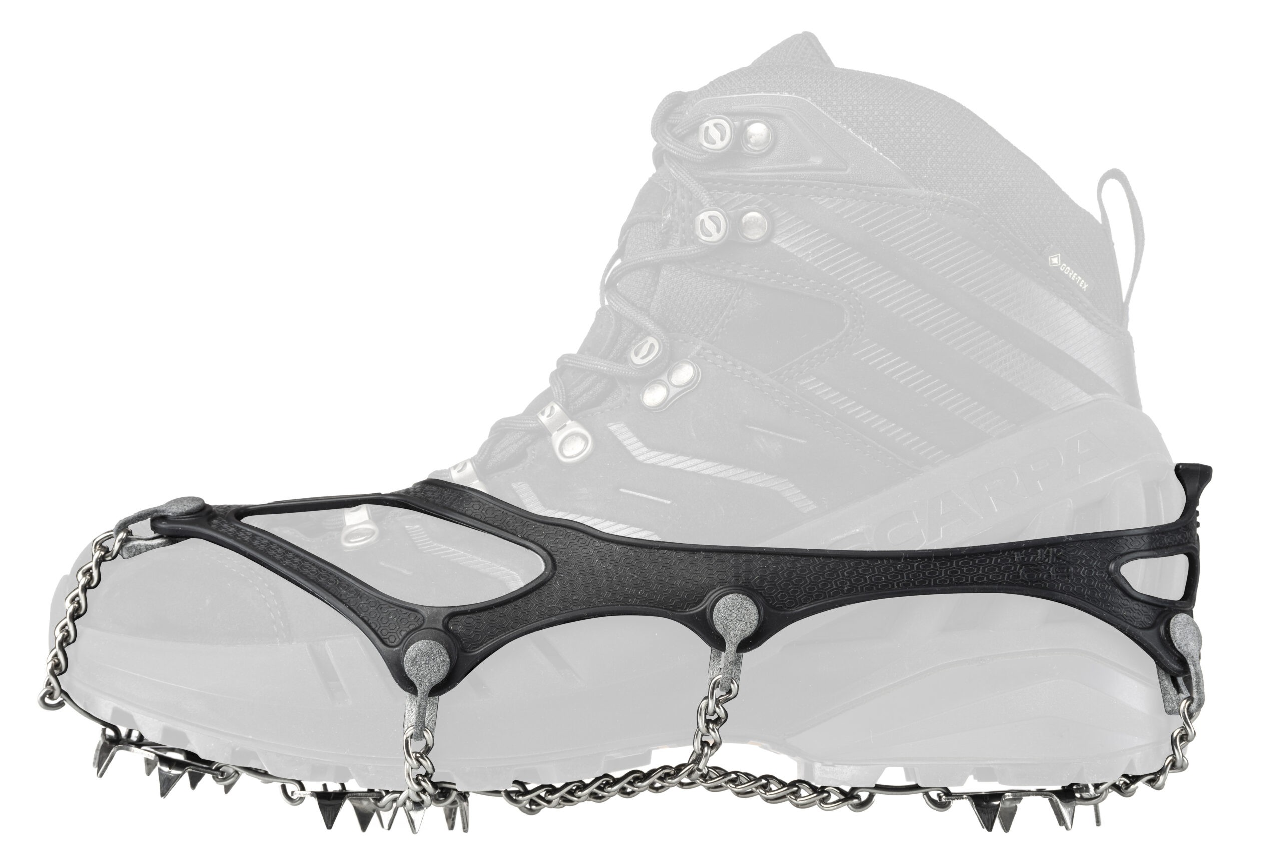- doskonale trzymają się butów dzięki elastycznej obejmie wykonanej z silikonowego elastomeru, odpornej na mrozy aż do -60oC!;