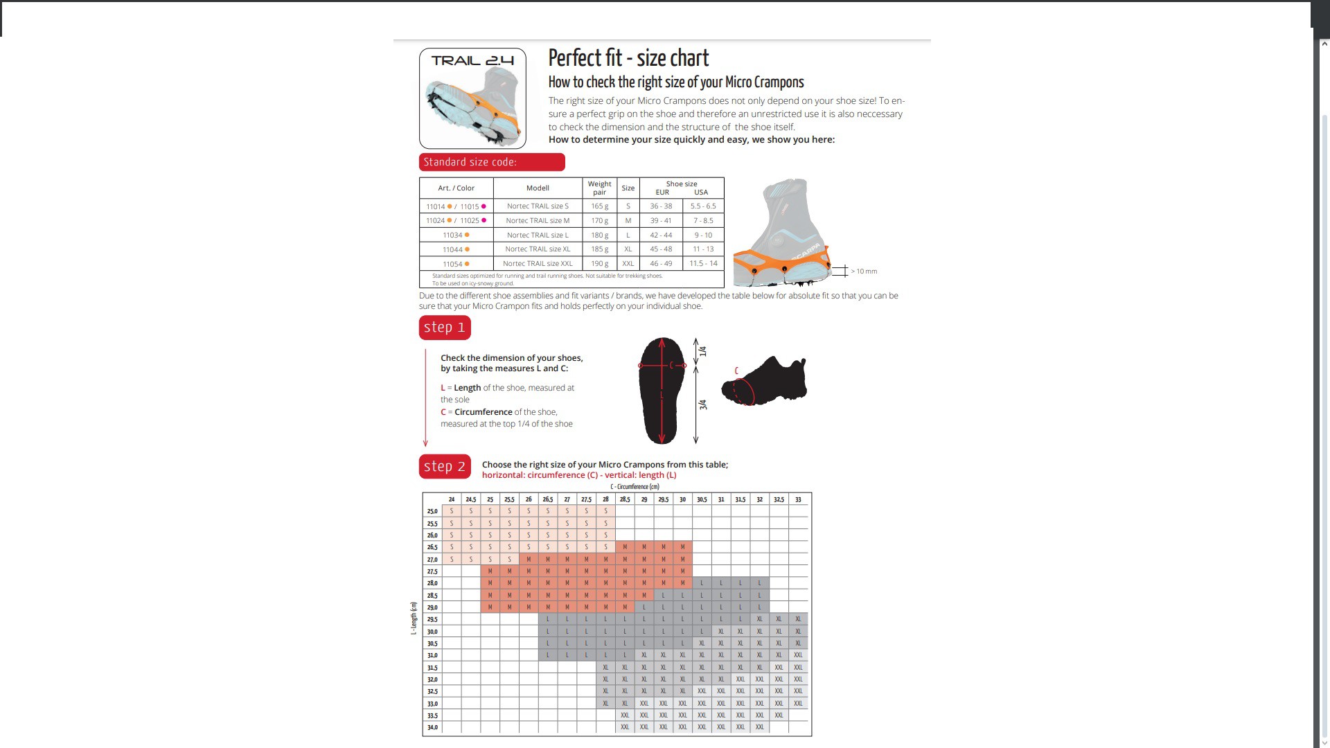 UWAGA. Rozmiar raczków należy dobierać do posiadanych butów, a nie do długości stopy!