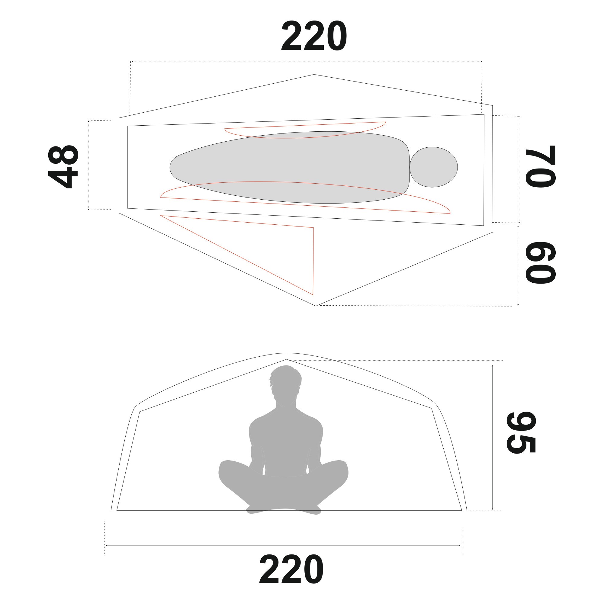 Komfortowa, hybrydowa jedynka, idealny kompromis między wygodą a lekkością. Dzięki systemowi DCS bez problemu usiądziesz czy przebierzesz się bez dotykania głową materiału sypialni. Swobodnie zmieszczą się w niej co najmniej 2 osoby na siedząco. Posiada dwa przedsionki (do drugiego dostaniesz się przez dodatkową klapę w sypialni).