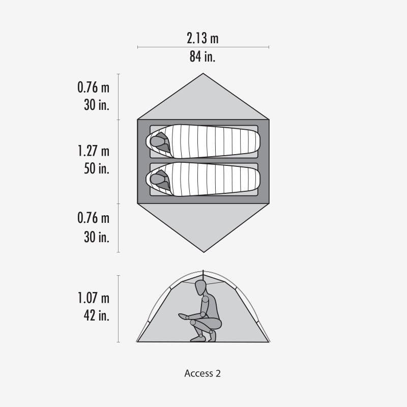 Namiot Access 2 to propozycja firmy MSR, dla turystów, którzy korzystają z uroków przyrody przez cały rok. Pokochają go osoby, które lubią podróżować w parze. Jest lekki, a przemyślana konstrukcja sprawia, że do wewnątrz nie przedostaje się deszcz, ani śnieg. Sypialnia kumuluje ciepło w środku, jest bardzo obszerna i wygodna. Łatwo rozłożysz go nawet podczas niesprzyjających warunków atmosferycznych.