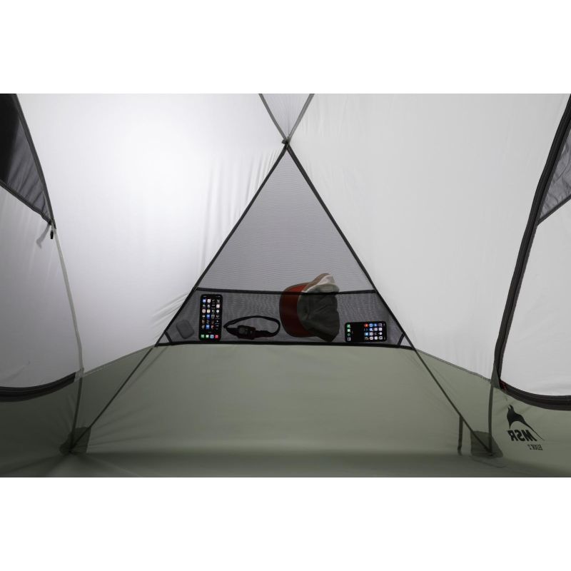 Wnętrze: Wnętrze jest przestronne i ma powierzchnię 2,82 m², dzięki czemu możesz się w nim swobodnie rozciągnąć. Bez problemu pomieści szerokie materace turystyczne, bez nakładania się, dzięki prostokątnej podłodze. Sypilania to kombinacja siatki i pełnego materiału, co zapewnia idealną równowagę między oddychalnością a prywatnością. Drzwi namiotu pozbawione krzywizn są wyposażone w zamki błyskawiczne, które łatwo obsługiwać jedną ręką. Zamki zamykają się również do jednego punktu, dzięki czemu zawsze wiesz, gdzie otworzyć drzwi, nawet w ciemności. Kieszenie z z otworami na kable w narożnikach są przyjazne dla technologii – idealne na słuchawki i przewody do ładowania. Duże kieszenie na sprzęt nad głową (gear loft) są idealne na czołówki, okulary przeciwsłoneczne i inne przedmioty wymagające szybkiego dostępu.