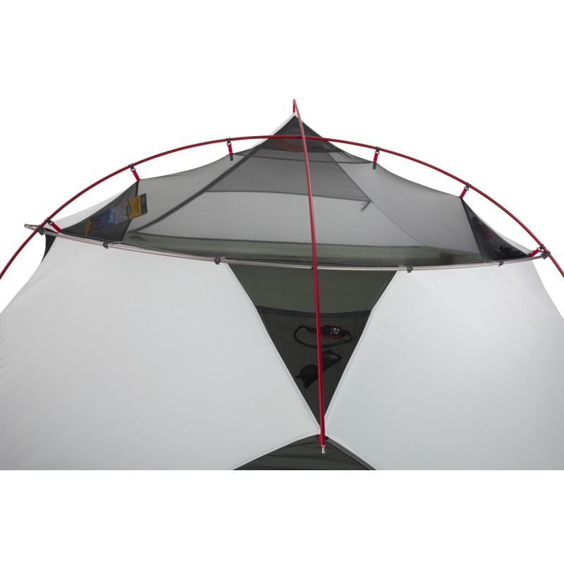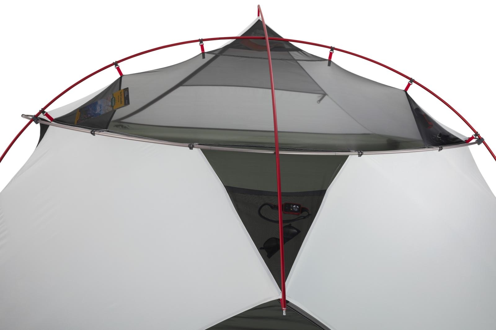 Wnętrze: Wnętrze jest przestronne i ma powierzchnię 5,11 m², dzięki czemu każdy może swobodnie się rozciągnąć na biwaku. Bez problemu pomieści nowoczesne, szerokie materace turystyczne, bez nakładania się, dzięki prawdziwie prostokątnej podłodze. Korpus namiotu to mieszanka siatki i pełnego materiału, co zapewnia idealną równowagę między oddychalnością a prywatnością. Drzwi namiotu pozbawione krzywizn są wyposażone w zamki błyskawiczne, które łatwo obsługiwać jedną ręką. Zamki zamykają się również do jednego punktu, dzięki czemu zawsze wiesz, gdzie otworzyć drzwi, nawet w ciemności. Kieszenie z portami kablowymi w narożnikach są przyjazne dla technologii – idealne na słuchawki i przewody do ładowania. Duże kieszenie na sprzęt nad głową (gear loft) są idealne na czołówki, okulary przeciwsłoneczne i inne przedmioty wymagające szybkiego dostępu.