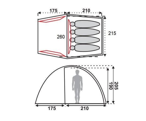 - Atutem namiotu jest jego wysokość - i w sypialni (195 cm) i w przedsionku (205 cm), dzieki której nawet wysocy użytkownicy nie będą odczuwać dyskomfortu niskich pomieszczeń ;-)
