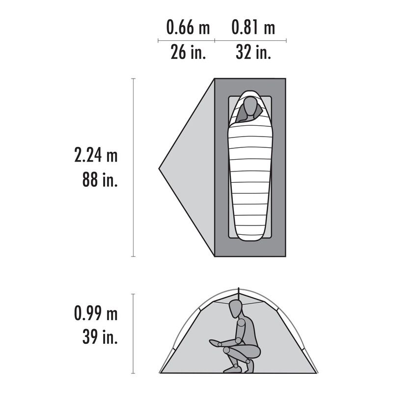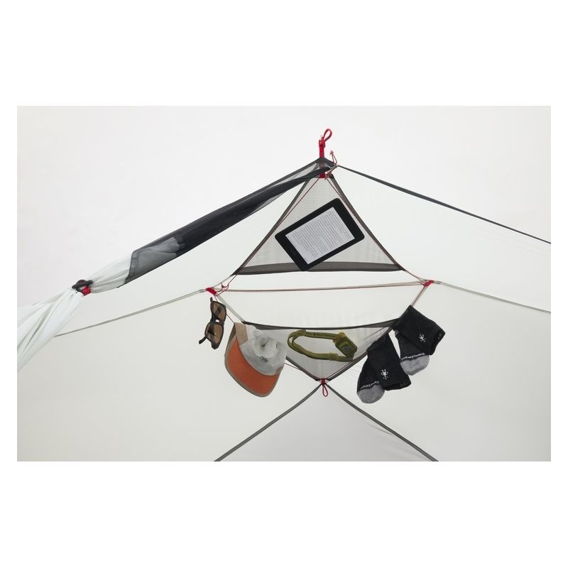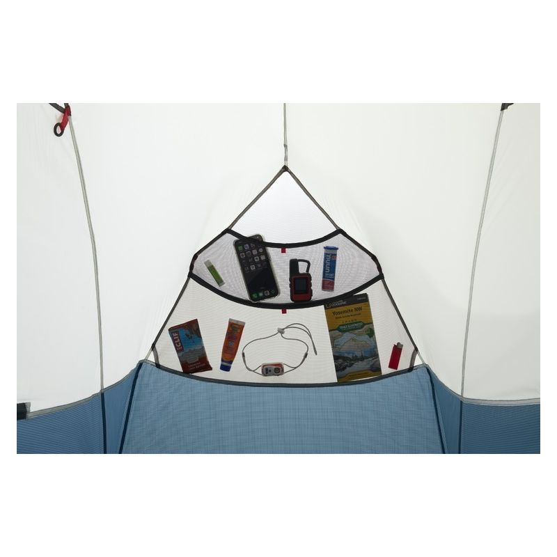 Wnętrze: Wnętrze to przestronne 1,82 m² (20 sq. feet) bez zwężania, aby pomieścić nowoczesne prostokątne materace turystyczne, oferując mnóstwo miejsca na relaks i przeczekanie żywiołów. Sypialnia wykonana jest w większości z pełnego materiału nylonowego dla maksymalnej ochrony przed pogodą, z wystarczającą ilością mikrosiatki barwionej w masie (solution-dyed) dla zapewnienia oddychalności i ochrony przed owadami. Wytrzymałe, proste drzwi namiotu (bez łuków) posiadają zamki, które są łatwe w obsłudze jedną ręką. Zamykają się one do jednego punktu, więc zawsze wiesz, gdzie otworzyć drzwi, nawet w ciemności. Kieszenie przyjazne technologii posiadają porty na kable w rogach na słuchawki i przewody do ładowania. Duża półka podsufitowa na sprzęt jest idealna na czołówkę, okulary przeciwsłoneczne i inne przedmioty szybkiego dostępu, a dołączony sznurek na pranie pozwala wysuszyć wilgotne ubrania.