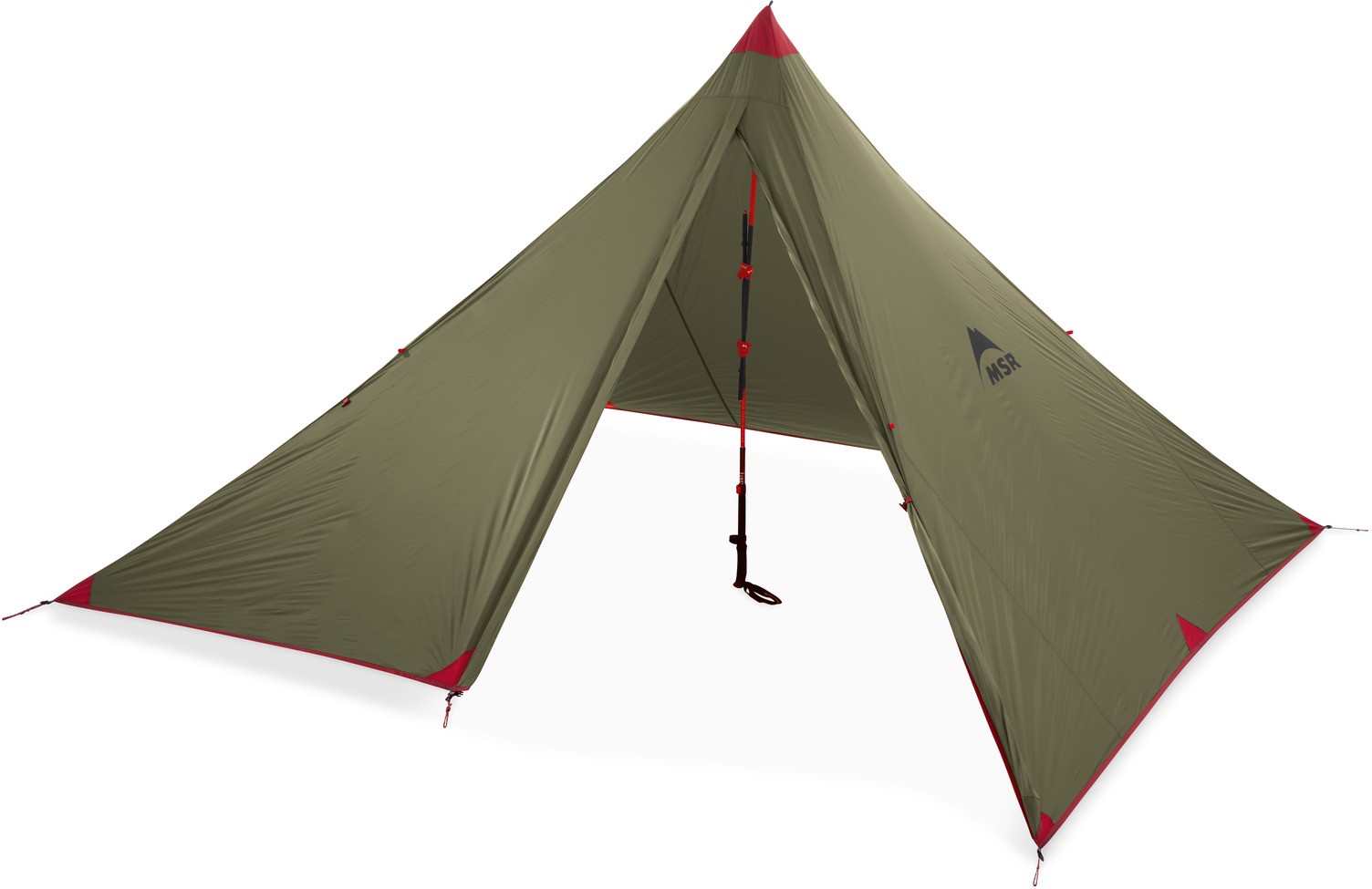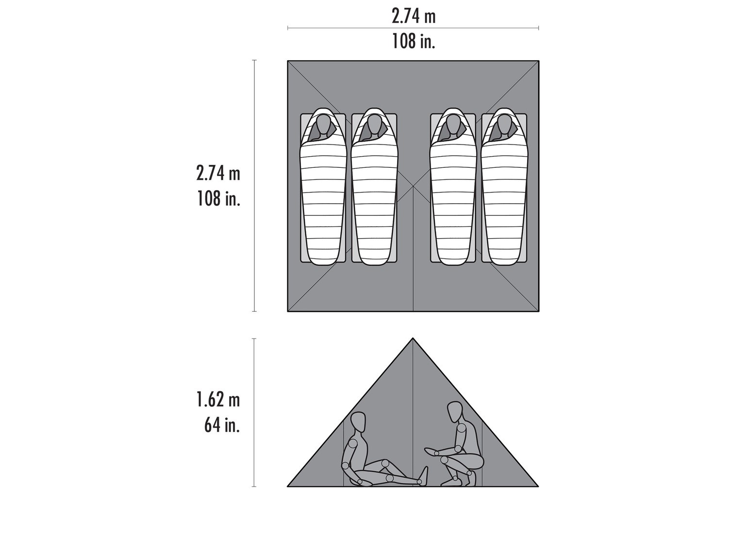 Czterosezonowa płachta namiotowa. Minimalistyczna oraz ultralekka. Rozstawiana na kijkach trekingowych. Dla narciarzy, wspinaczy, turystów i rowerzystów. Pomieści maksymalnie cztery osoby.