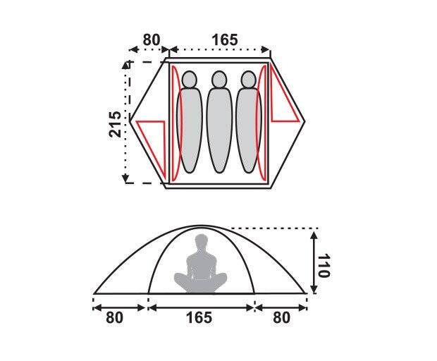- przestronny namiot wyprawowy dla 2-3 osób, przeznaczony do użytku na górskich wędrówkach, wycieczkach rowerowych, biwakach, spływach kajakowych – na każdą porę roku;
