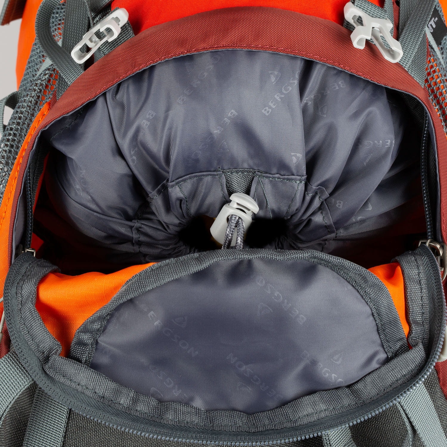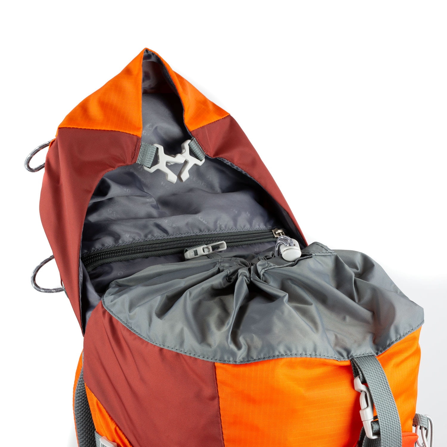 Plecak turystyczny z klapą. Solidny i miękki pas biodrowy z kieszonkami oraz pas piersiowy a także wyprofilowane szelki wygodnie dopasowują plecak do pleców i ułatwiają noszenie cięższego bagażu. Plecak posiada dwie kieszenie, kieszeń w klapie oraz kieszeń w na wierzchu. Boczne kieszenie z siatki pomieszczą butelkę z wodą lub podręczne drobiazgi. Plecak wyposażony jest w pokrowiec przeciwdeszczowy. Uchwyt do przenoszenia. Plecak ma możliwość przypięcia kijków trekkingowych lub dwóch czekanów. Wyposażony w elementy odblaskowe zwiększające bezpieczeństwo. Plecy plecaka to konstrukcja izolująca i odsuwająca plecy plecaka od pleców, co skutkuje znakomitą wentylacją.