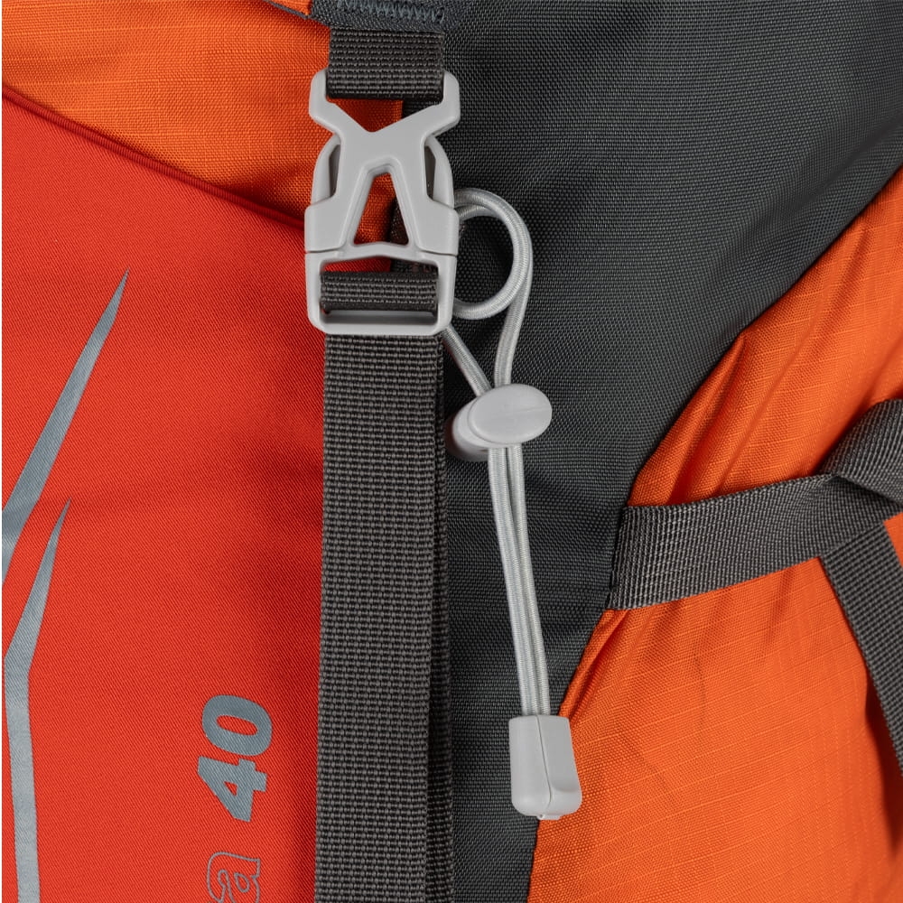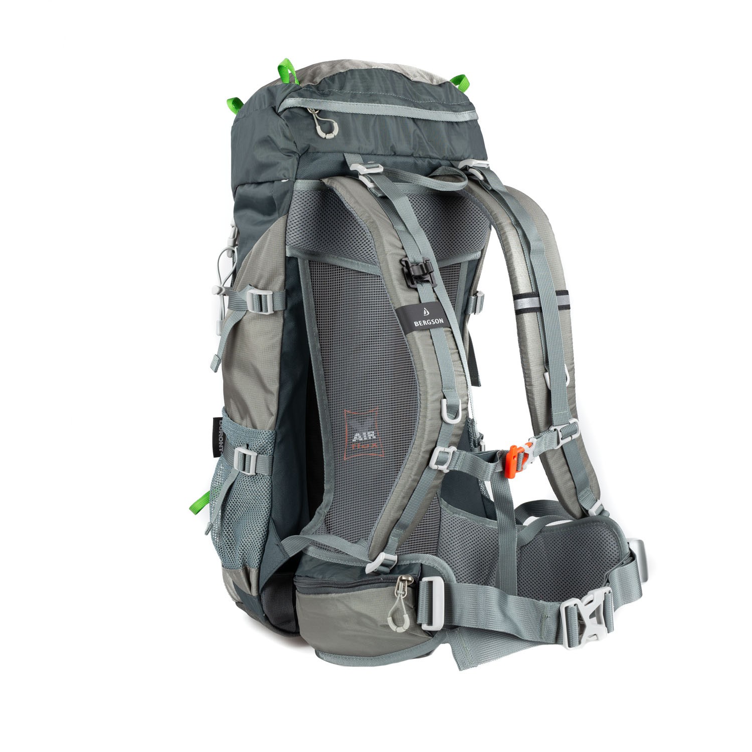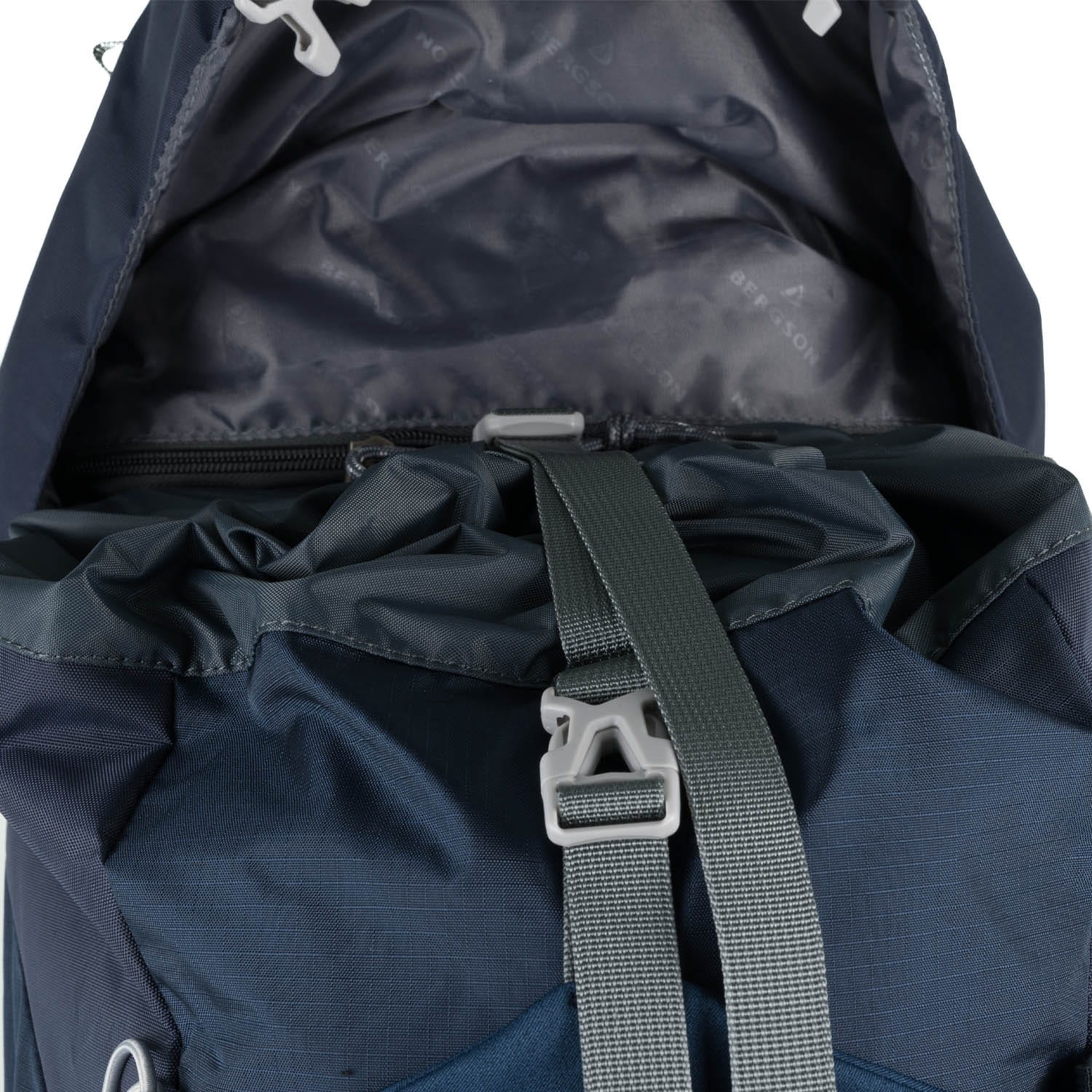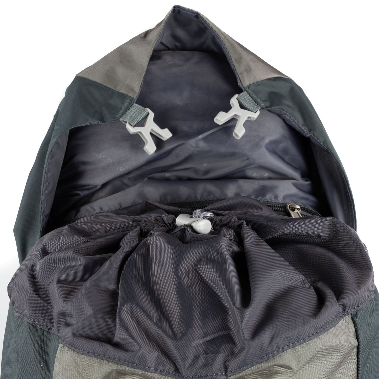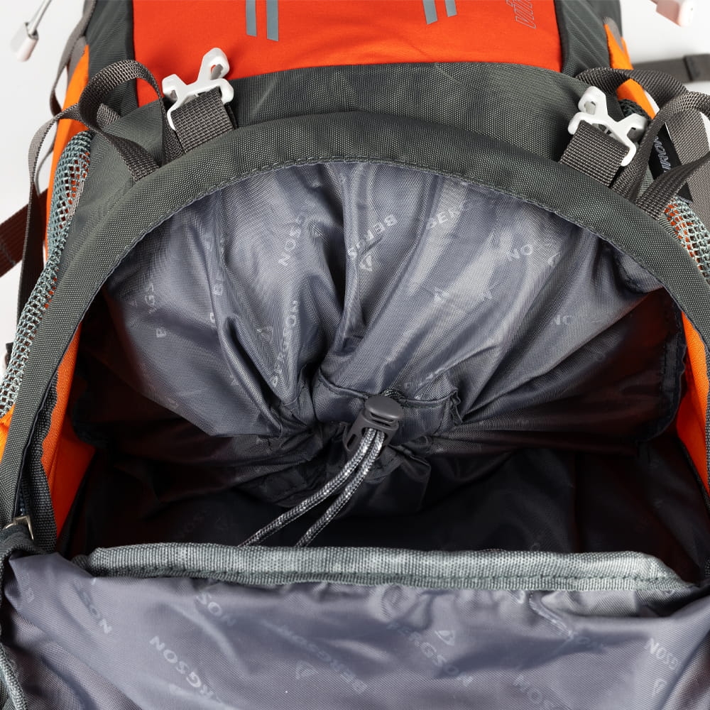 Plecak turystyczny z klapą. Solidny i miękki pas biodrowy z kieszonkami oraz pas piersiowy a także wyprofilowane szelki wygodnie dopasowują plecak do pleców i ułatwiają noszenie cięższego bagażu. Plecak posiada dwie kieszenie, kieszeń w klapie oraz kieszeń w na wierzchu. Boczne kieszenie z siatki pomieszczą butelkę z wodą lub podręczne drobiazgi. Plecak wyposażony jest w pokrowiec przeciwdeszczowy. Uchwyt do przenoszenia. Plecak ma możliwość przypięcia kijków trekkingowych lub dwóch czekanów. Wyposażony w elementy odblaskowe zwiększające bezpieczeństwo. Plecy plecaka to konstrukcja izolująca i odsuwająca plecy plecaka od pleców, co skutkuje znakomitą wentylacją.