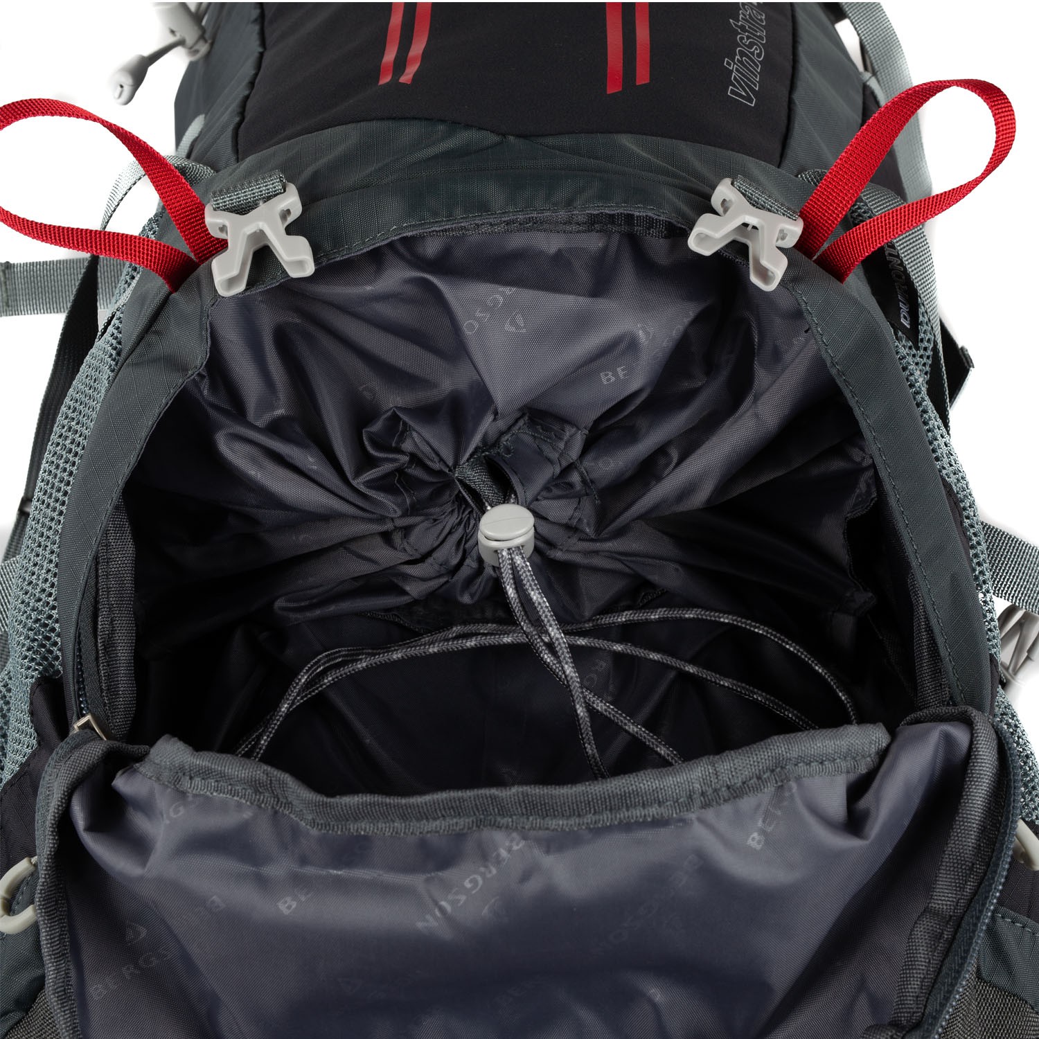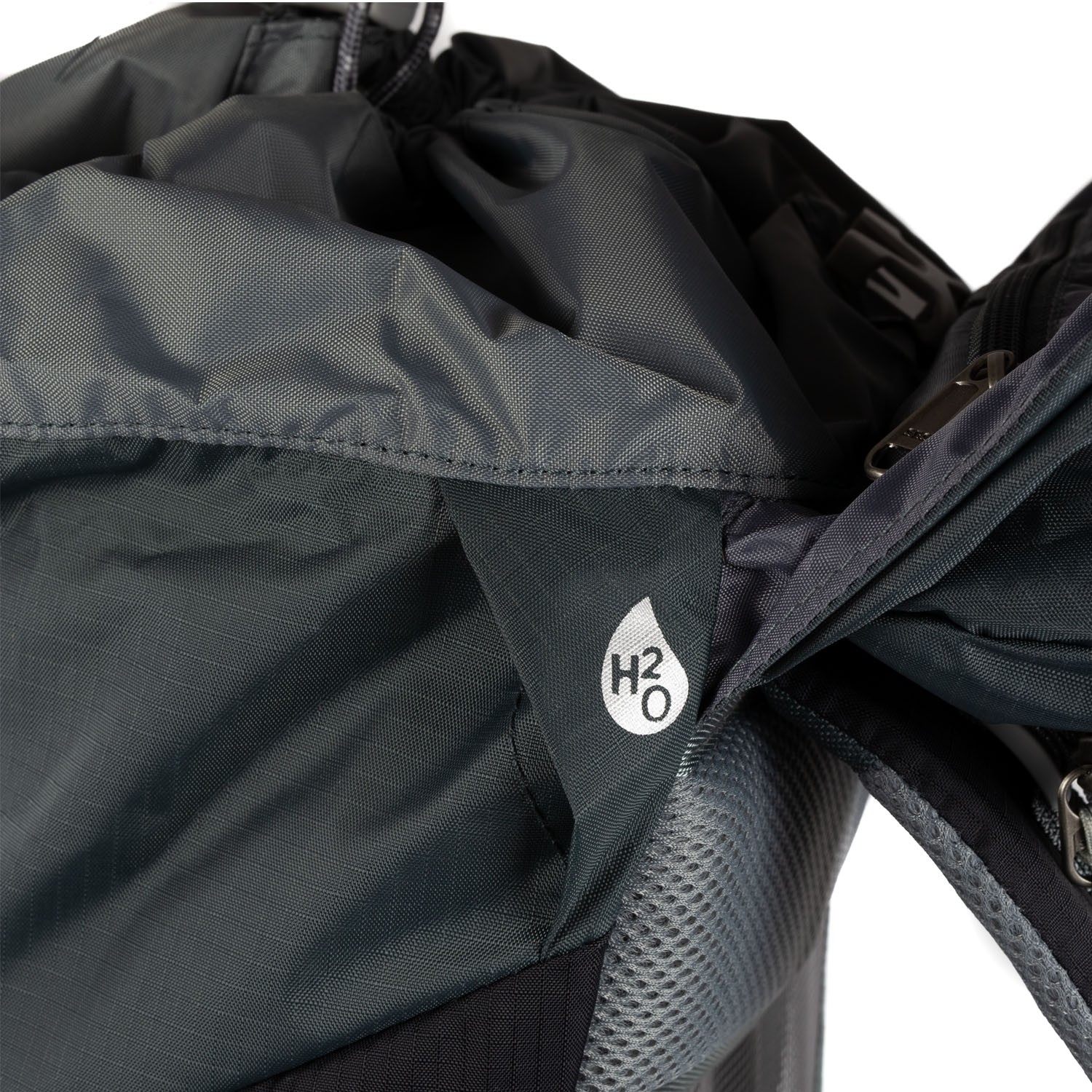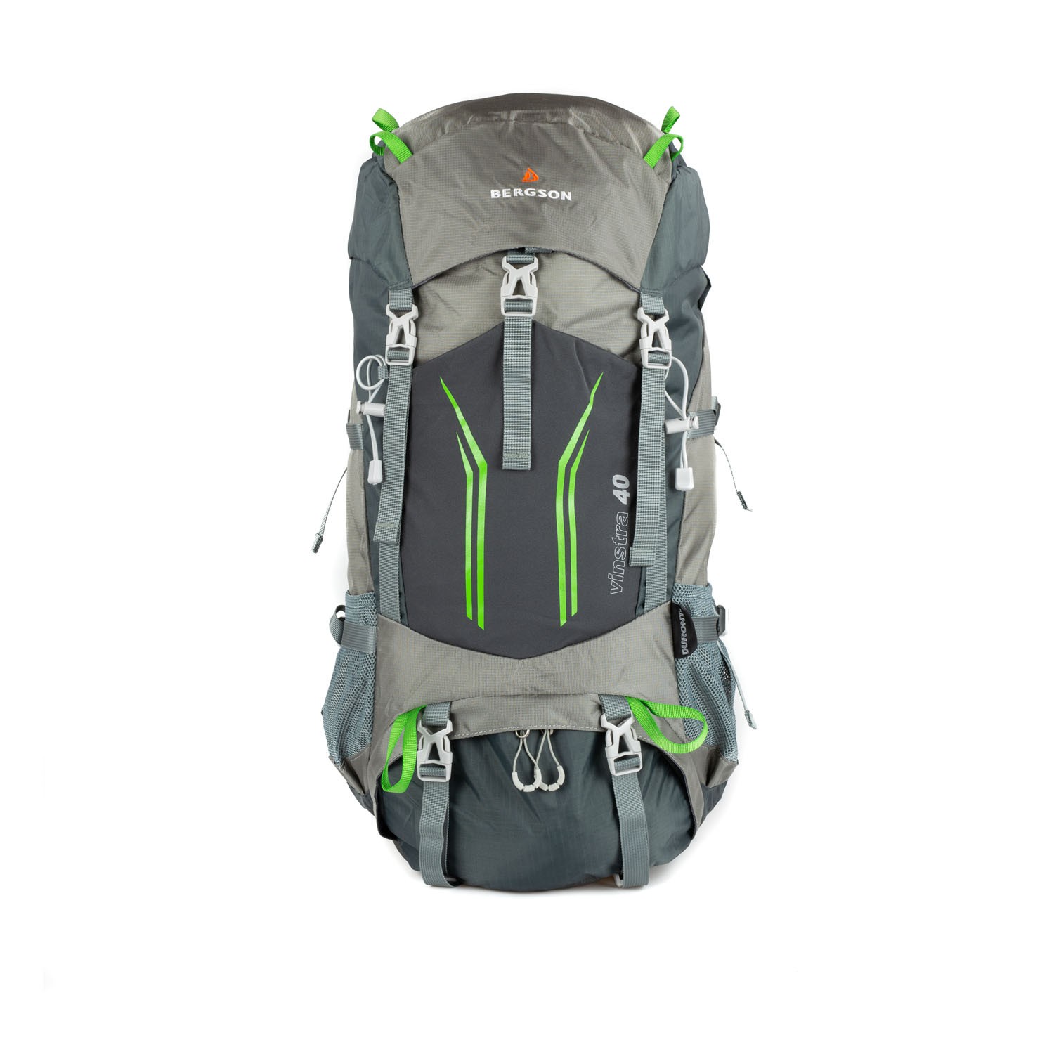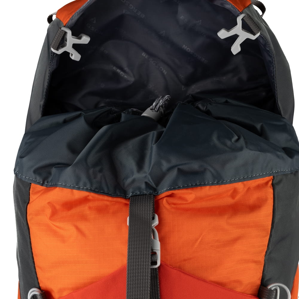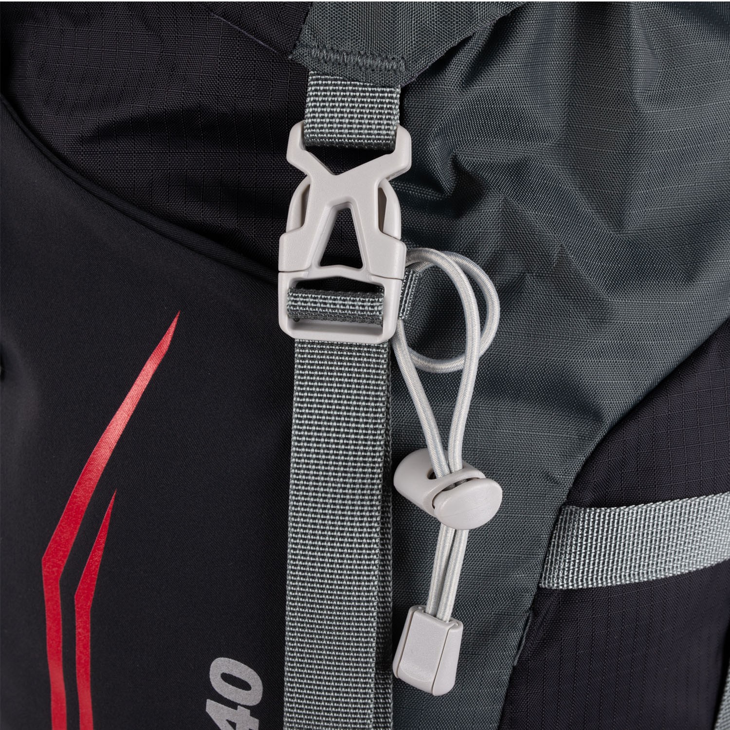 Plecak turystyczny z klapą. Solidny i miękki pas biodrowy z kieszonkami oraz pas piersiowy a także wyprofilowane szelki wygodnie dopasowują plecak do pleców i ułatwiają noszenie cięższego bagażu. Plecak posiada dwie kieszenie, kieszeń w klapie oraz kieszeń w na wierzchu. Boczne kieszenie z siatki pomieszczą butelkę z wodą lub podręczne drobiazgi. Plecak wyposażony jest w pokrowiec przeciwdeszczowy. Uchwyt do przenoszenia. Plecak ma możliwość przypięcia kijków trekkingowych lub dwóch czekanów. Wyposażony w elementy odblaskowe zwiększające bezpieczeństwo. Plecy plecaka to konstrukcja izolująca i odsuwająca plecy plecaka od pleców, co skutkuje znakomitą wentylacją.