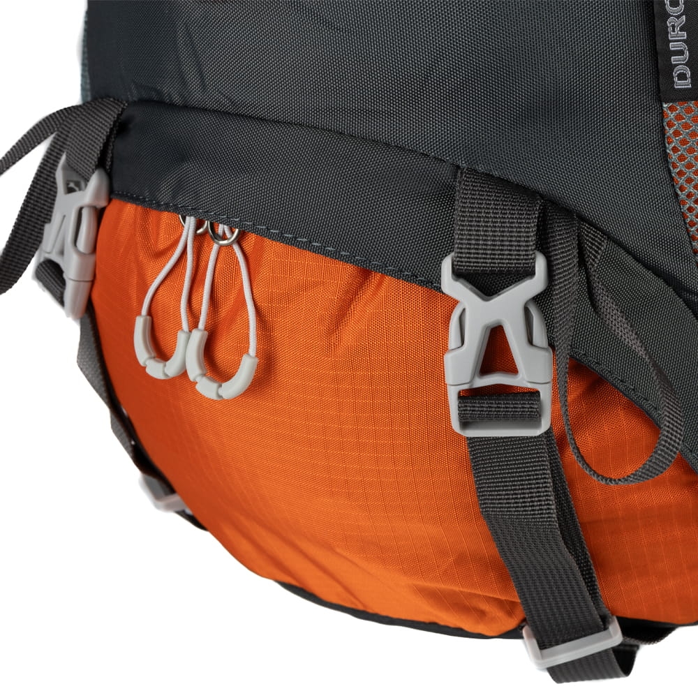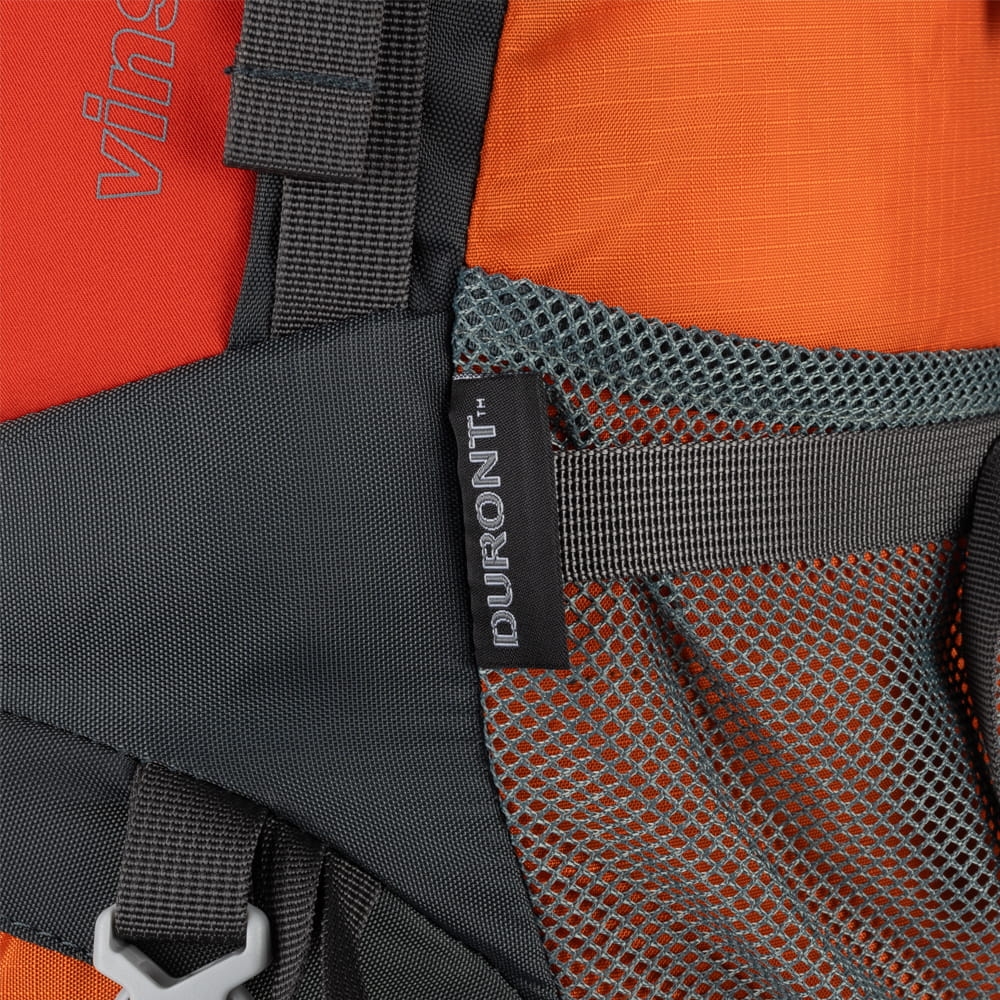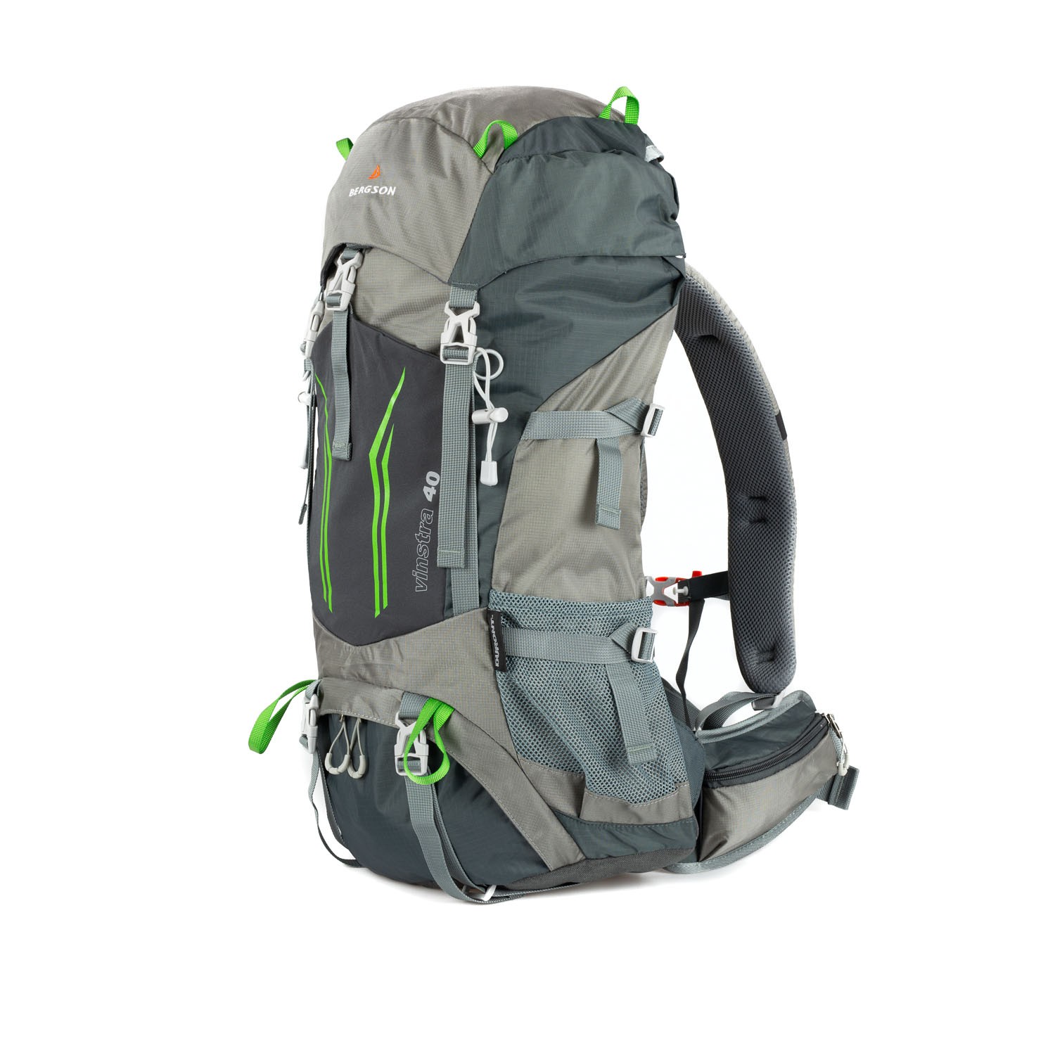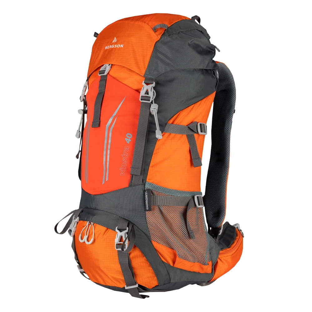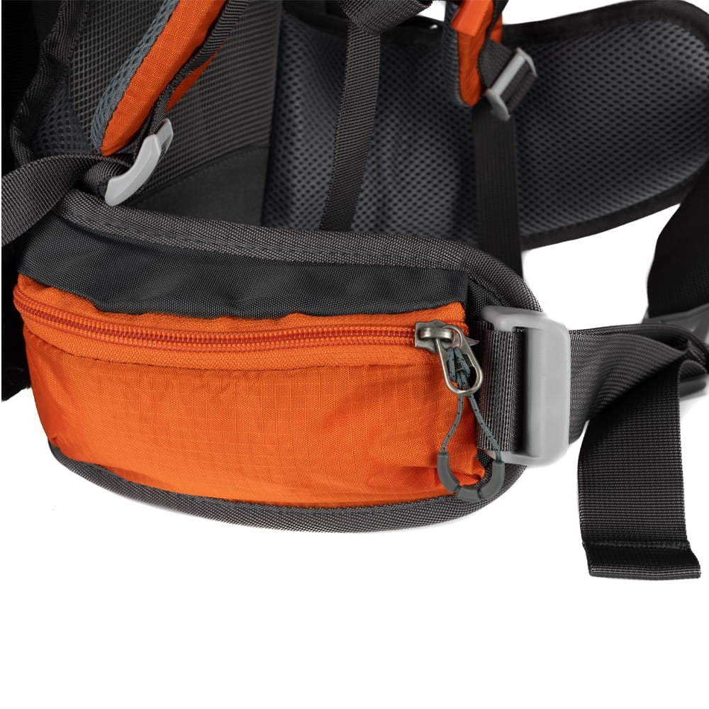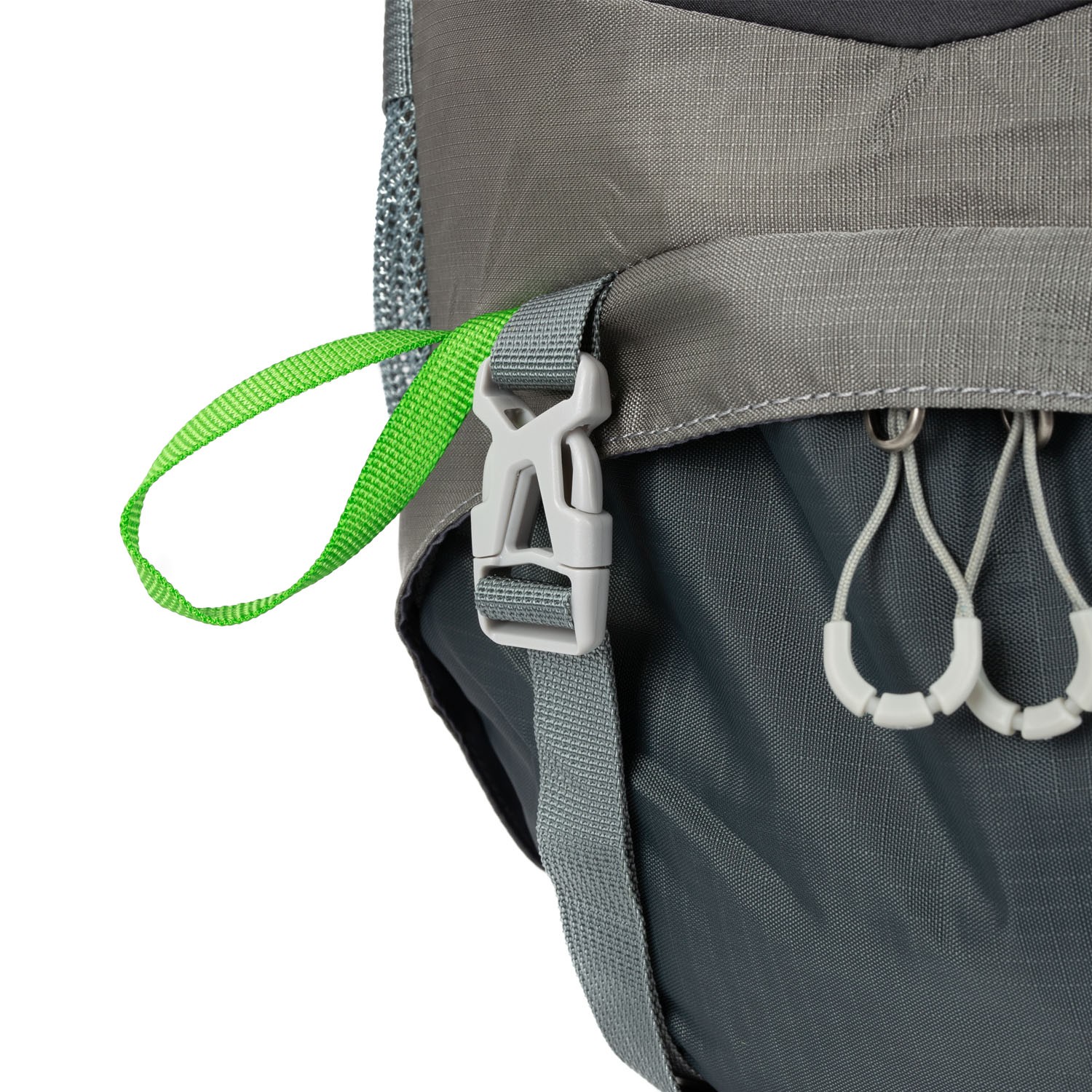 Plecak turystyczny z klapą. Solidny i miękki pas biodrowy z kieszonkami oraz pas piersiowy a także wyprofilowane szelki wygodnie dopasowują plecak do pleców i ułatwiają noszenie cięższego bagażu. Plecak posiada dwie kieszenie, kieszeń w klapie oraz kieszeń w na wierzchu. Boczne kieszenie z siatki pomieszczą butelkę z wodą lub podręczne drobiazgi. Plecak wyposażony jest w pokrowiec przeciwdeszczowy. Uchwyt do przenoszenia. Plecak ma możliwość przypięcia kijków trekkingowych lub dwóch czekanów. Wyposażony w elementy odblaskowe zwiększające bezpieczeństwo. Plecy plecaka to konstrukcja izolująca i odsuwająca plecy plecaka od pleców, co skutkuje znakomitą wentylacją.
