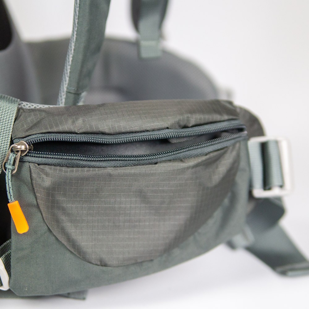 Na pasie biodrowym znajdują się dwie zamykane na suwak kieszonki na drobiazgi.