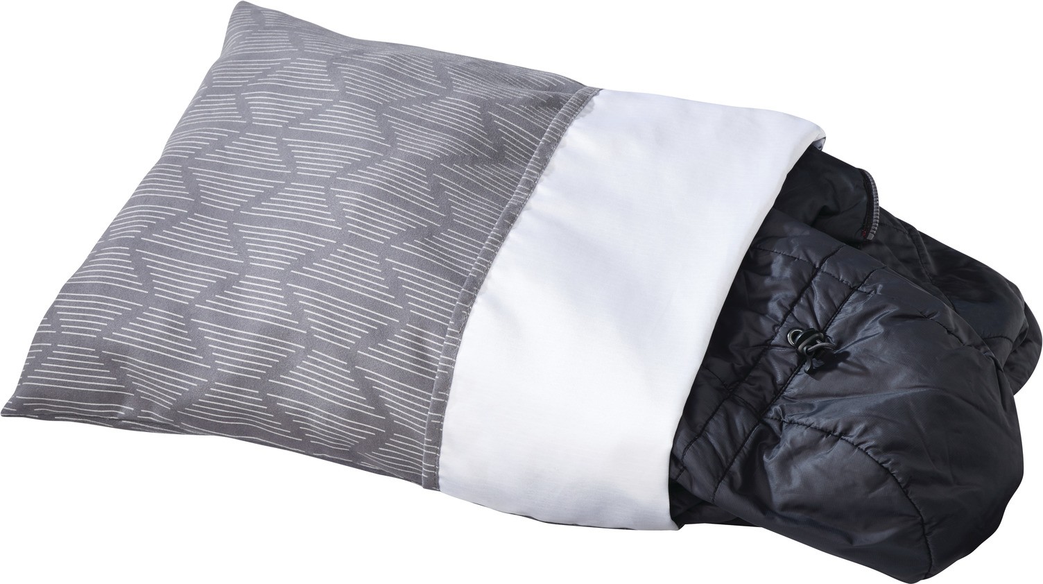 Powłoczka/pokrowiec na poduszkę. Złożony mieści się w kieszeni śpiwora lub plecaka, wypełniony, np, ubraniami tworzy wygodną, miłą w dotyku poduszkę.