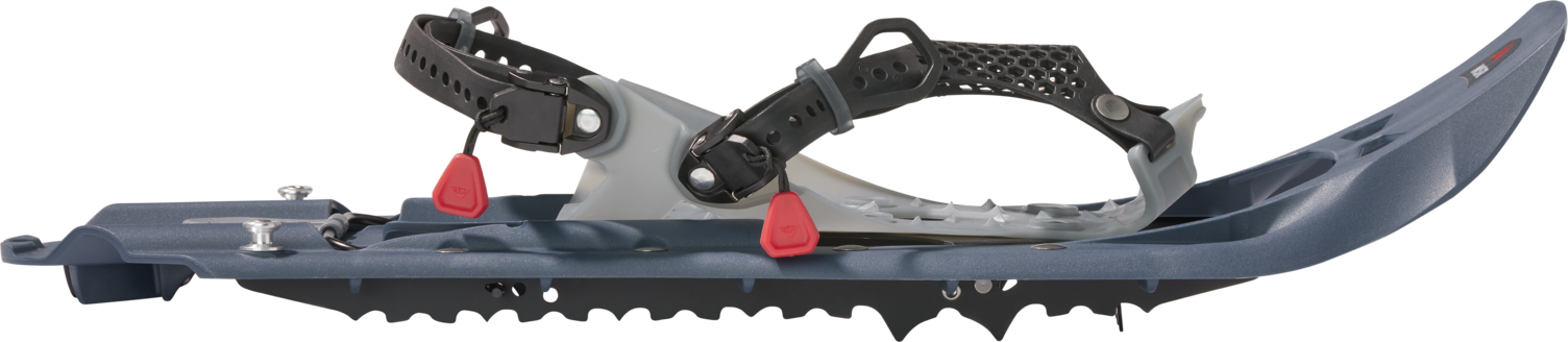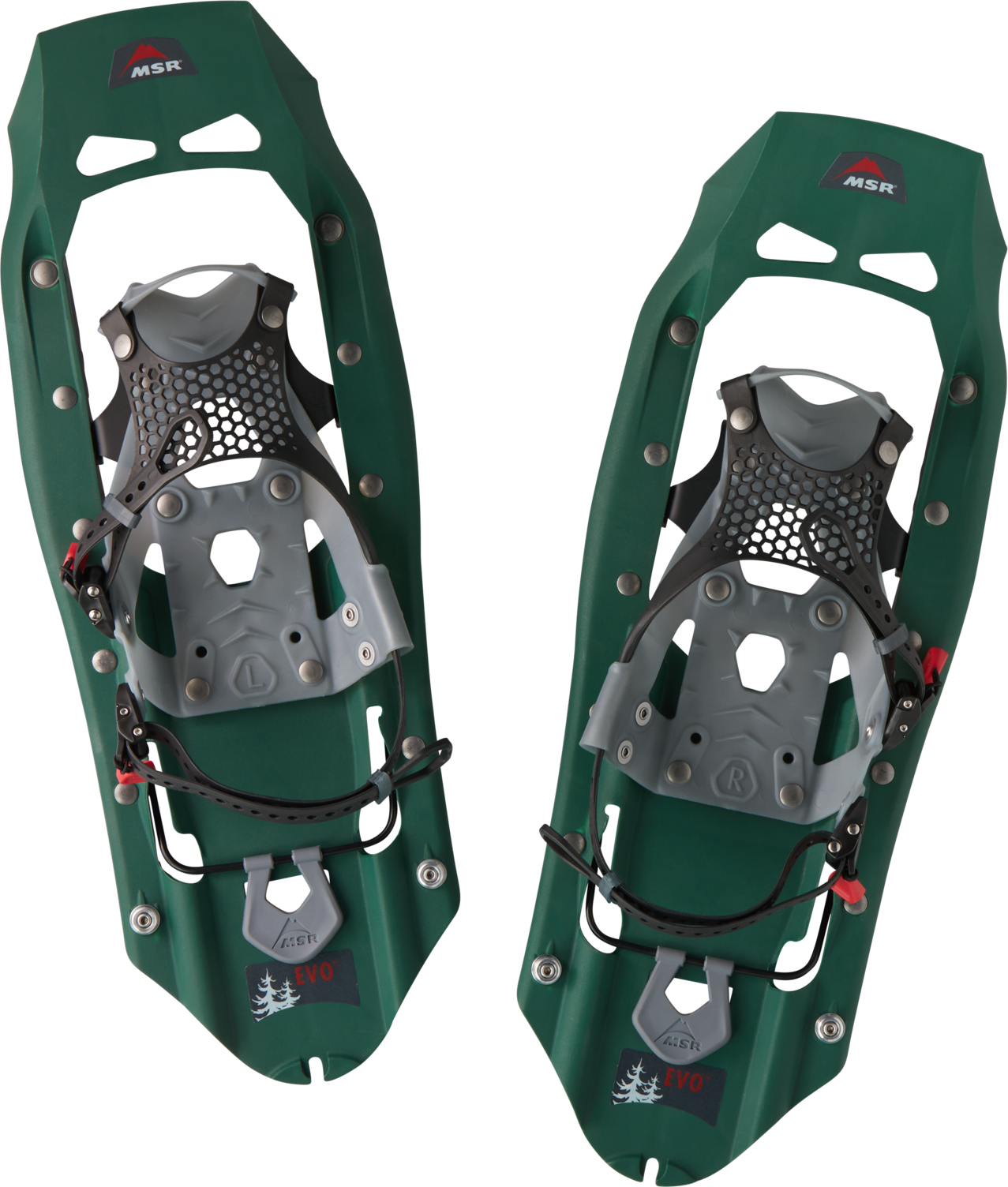 Rakieta śnieżna MSR Evo to konstrukcja z odpornego na mróz i mechaniczne urazy tworzywa, wyposażona w zęby, które zapewniają znakomitą przyczepność do śnieżnych i lodowych powierzchni, oraz elastycznego, odpornego na mróz tworzywa. Wiązania DuoFit to trzy paski: na śródstopiu, kostce i pięcie. Stabilnie mocują rakietę do buta, utrzymując ją w stałej pozycji. Cztery atakujące zęby Pivot Crampon z przodu ramy zapewniają równowagę i przyczepność, wbijając się w śnieg przy każdym kroku. Można zamocować przedłużki z tyłu każdej rakiety: zwiększą powierzchnię nośną, ułatwiając marsz osobom o większej wadze lub idącym z większym ciężarem.