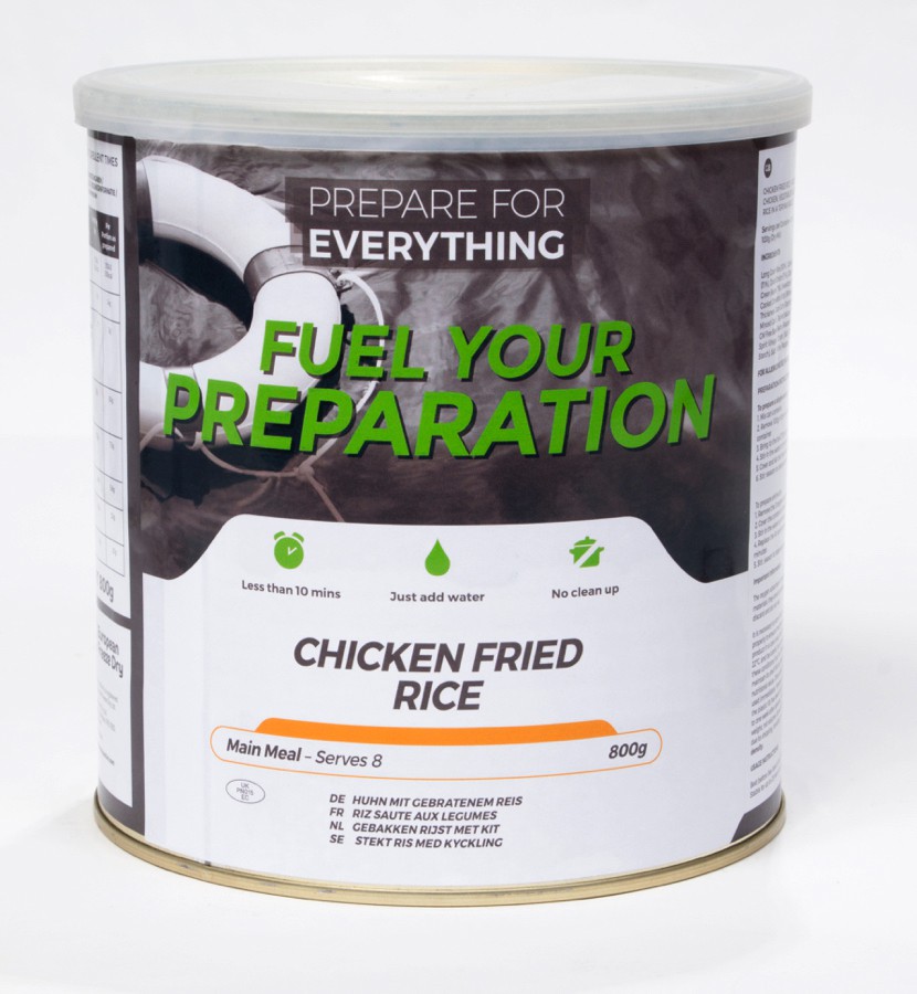 Smażony kurczak z ryżem Fuel Your Preparation to pełnowartościowy obiad, który zaspokoi głód w sytuacji awaryjnej.