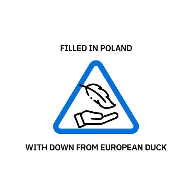 - Wypełnienie – puch i pierze z polskiej kaczki w proporcjach 91/9.