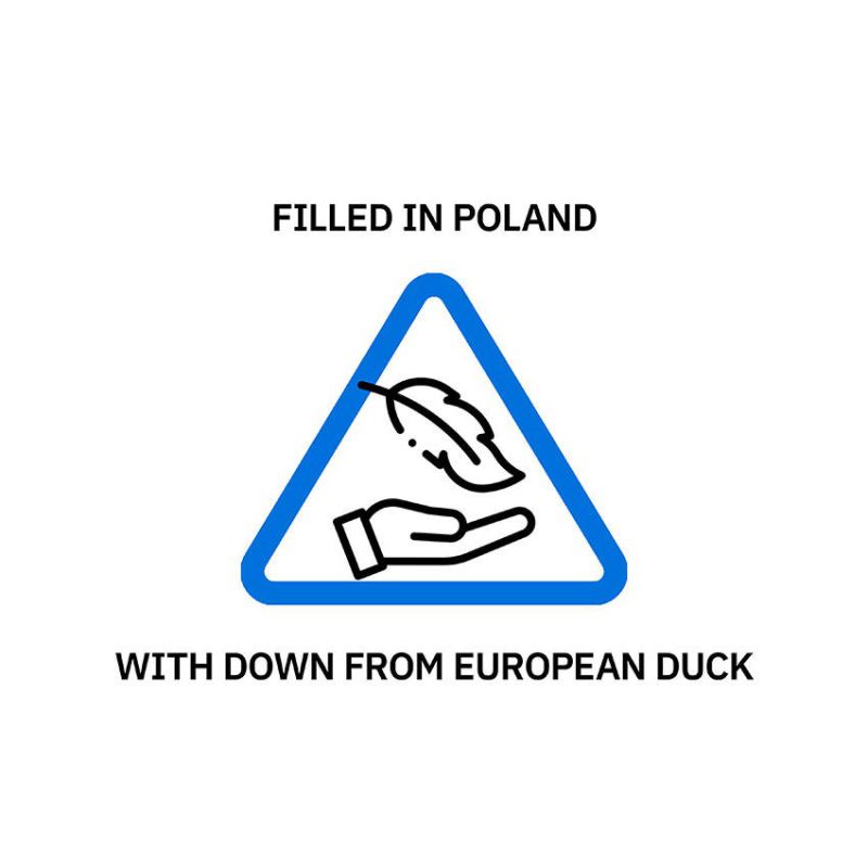- wypełnienie – puch i pierze z powłoką hydro z europejskiej kaczki w proporcjach 92/8;