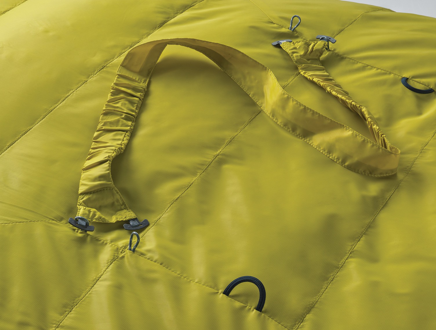 Śpiwór, będąc przyczepionym do materaca, ma specjalną konstrukcję, która pozwala na swobodne obracanie się w jego wnętrzu oraz zginanie nóg w kolanach. Będąc przyczepionym do materaca, nie obracamy się razem ze śpiworem, ale w jego wnętrzu, co dodatkowo podnosi nasz komfort spania w terenie, czyniąc go podobnym do spania we własnym łóżku.