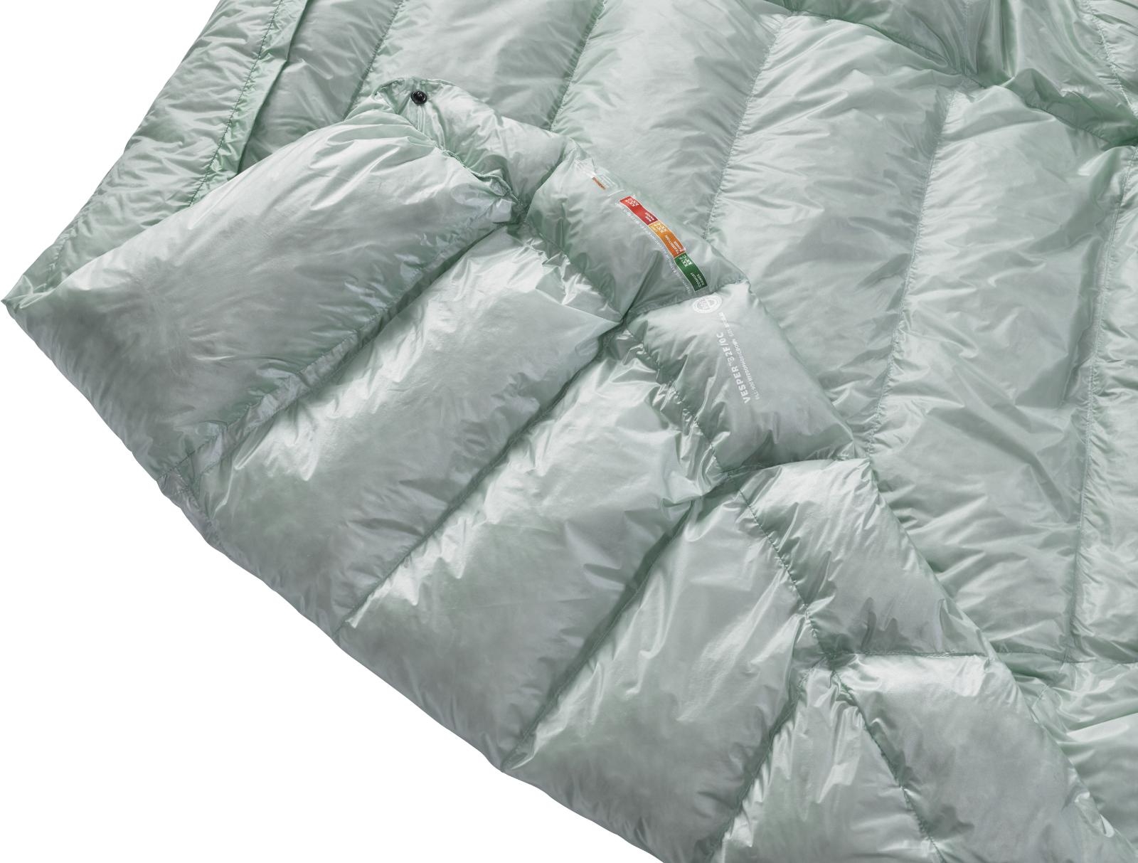 Wykorzystuje wydajną termicznie konstrukcję komór kasetowych (box baffled) oraz najwyższej jakości puch 900 cuin, aby zmaksymalizować zatrzymywanie ciepła przy ultralekkiej wadze.