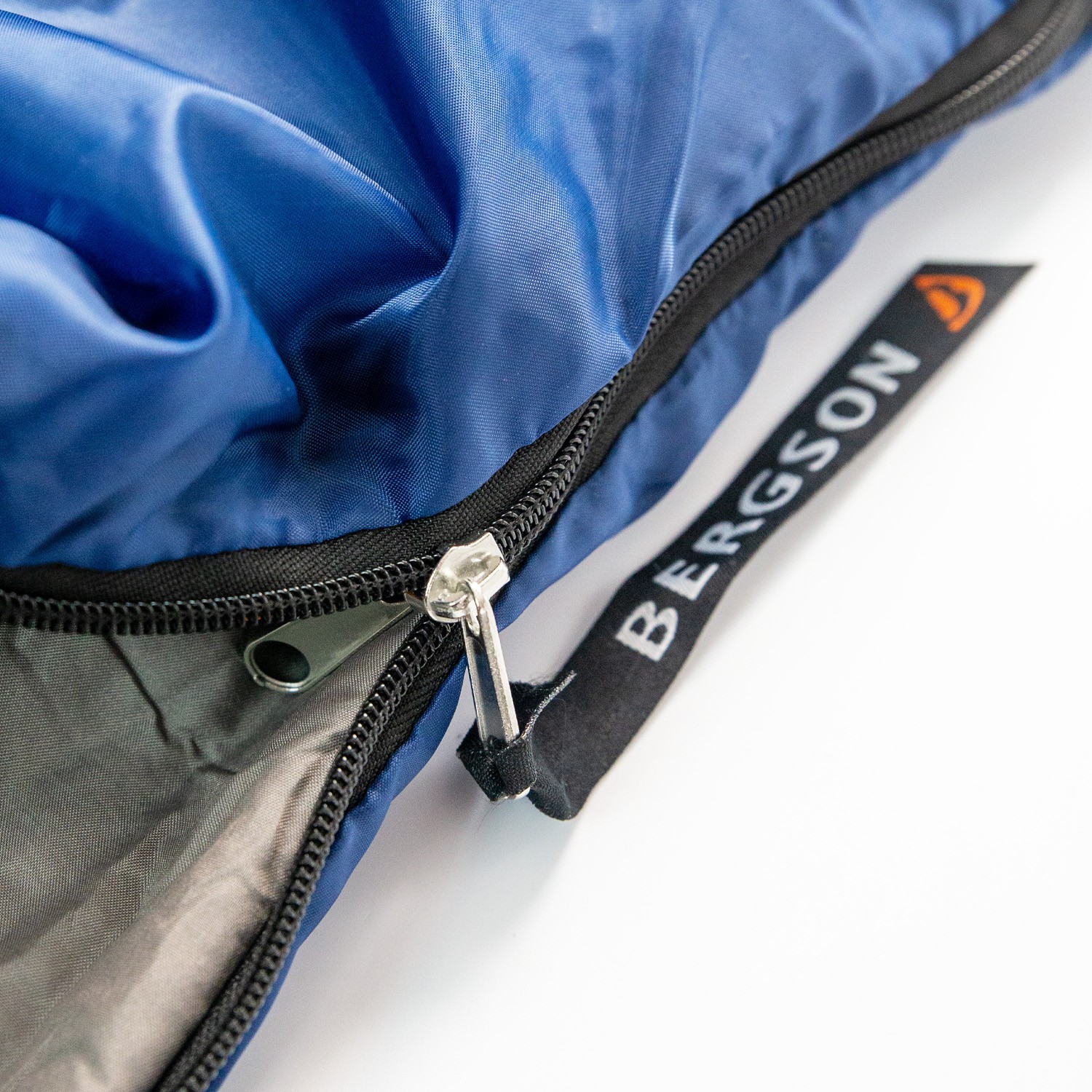 Śpiwór typu kołdra z wypełnieniem syntetycznym, z kapturem. Śpiwory można połączyć po dwa, tworząc dwuosobowe legowisko.