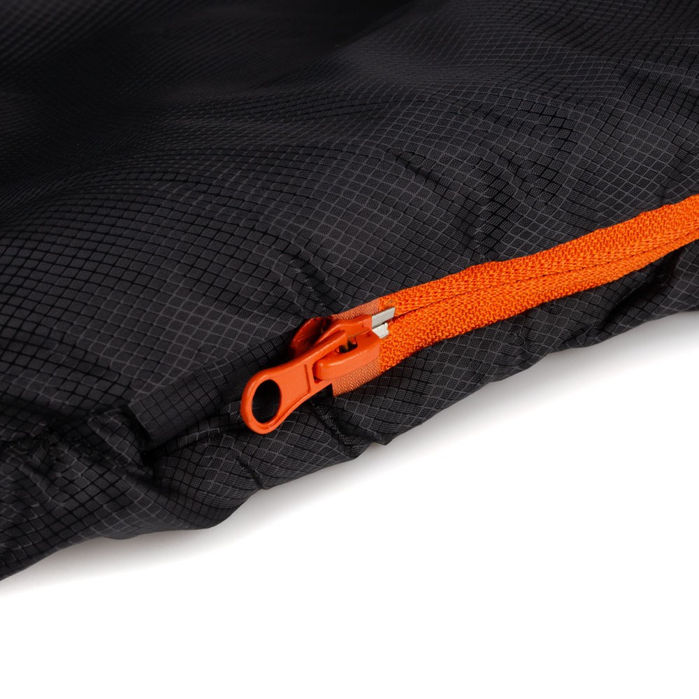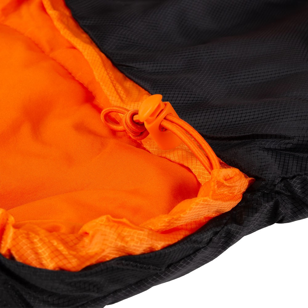 Letni śpiwór z wypełnieniem syntetycznym. Ultralekki, w kształcie mumii. Zamek lewy.
