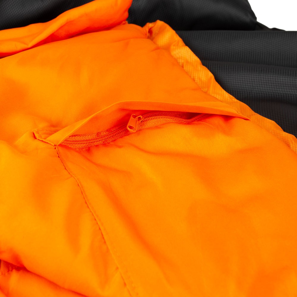 Letni, ultralekki śpiwór w kształcie mumii, z wypełnieniem syntetycznym. Zamek lewy.