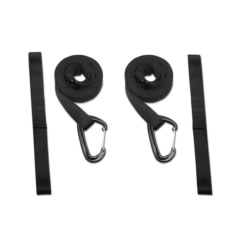 Alternatywny system naciągu, złożony z taśm i karabinków, który znacznie usprawni proces rozwieszania. Dwie taśmy z klamrą samozaciskową i karabinkiem są bezpieczniejsze dla powierzchni, na których rozwieszasz hamak. Zapobiegną wcinaniu się linek hamaka w korę drzewa czy deski balustrady.