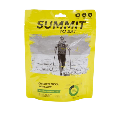 Tikka z kurczakiem i ryżem w pikantnym sosie curry (ponad 1000 kcal) Summit to Eat to pełnowartościowy obiad, który zaspokoi głód w każdej podróży. Liofilizowana żywność stanowi doskonałe rozwiązanie podczas wypraw z dala od schronisk i ludzkich siedzib, zwłaszcza w trakcie wypraw w ekstremalnych warunkach. Tego typu żywność jest niezastąpiona na szlaku: dodaje sił, zaspokaja głód, a przy tym waży niewiele i nie zajmuje w plecaku dużo miejsca. Liofilizowane dania – sprawdzone w ekstremalnych warunkach – przydadzą się też na tradycyjnych wakacjach w razie kłopotów z prowiantem.