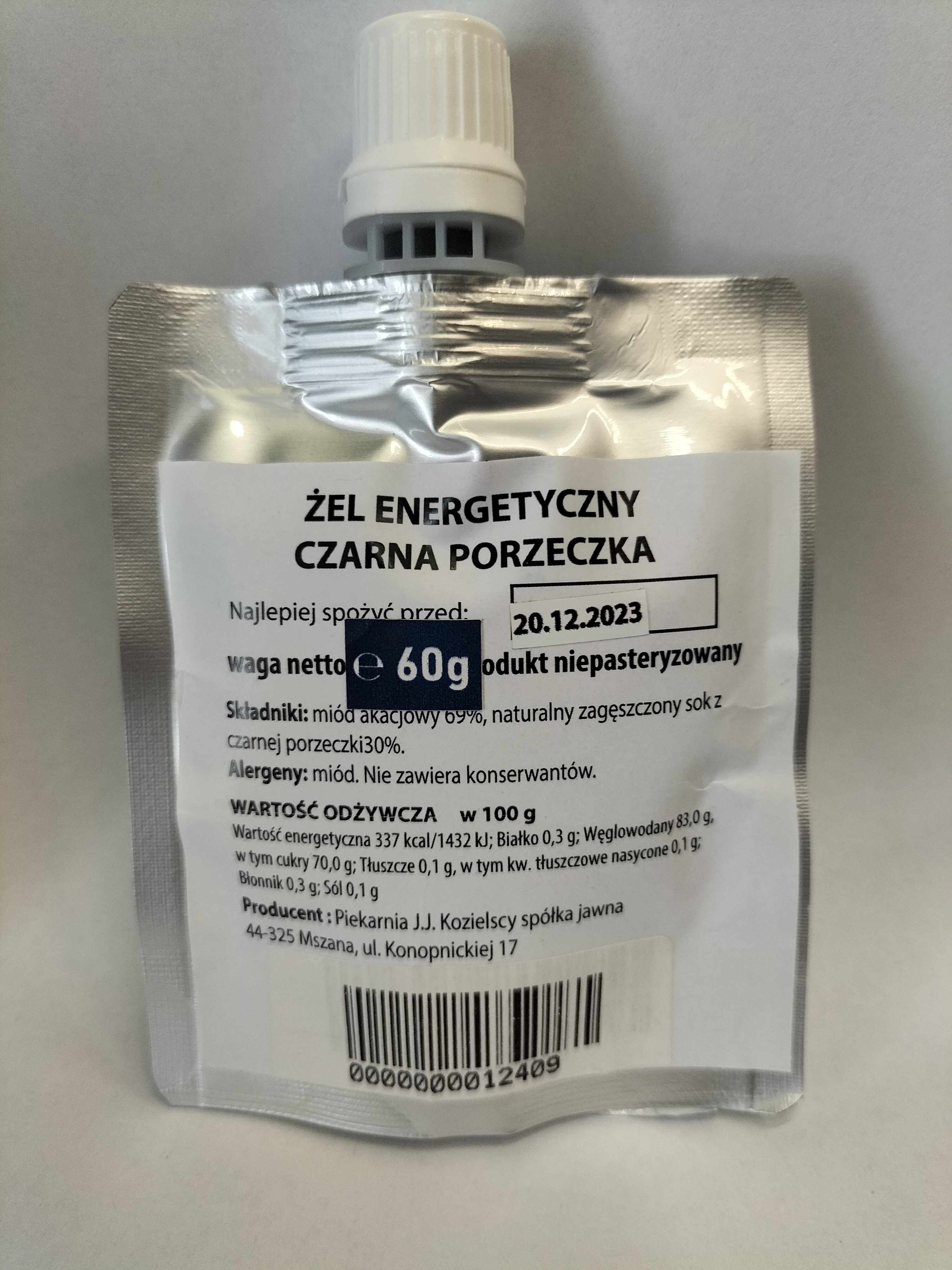 Żel energetyczny dający zastrzyk energii wtedy, kiedy jest to potrzebne. Wartość energetyczna 337 kcal w porcji 100 gramów.
